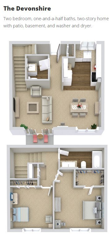 Apartment Model: 2 BR 1.5 BATH / TOWNHOUSEFrom $1,4052 Bedroom, 1.5 Bath, 922 sq ftAvailable NowFloorplansPhotos![]()