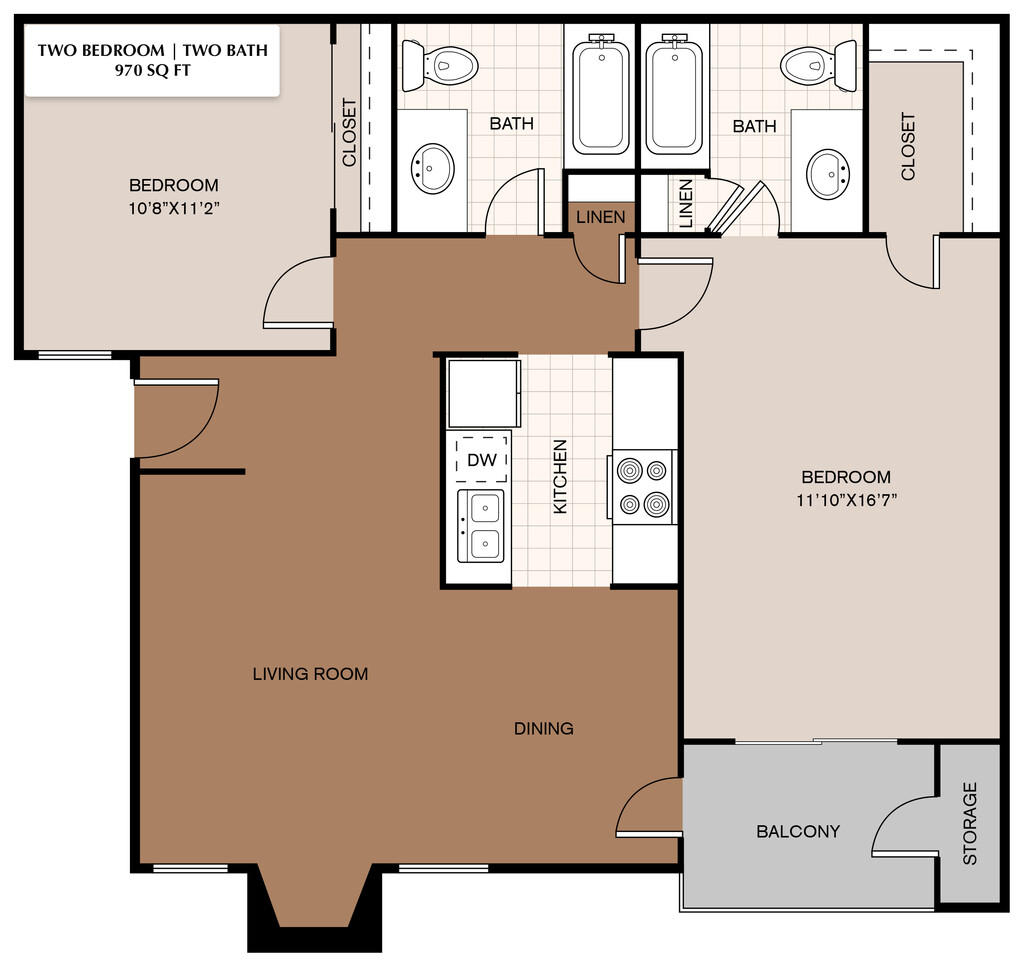 2 Beds, 2 Baths, 970 sq ftAvailable NowModel Gallery