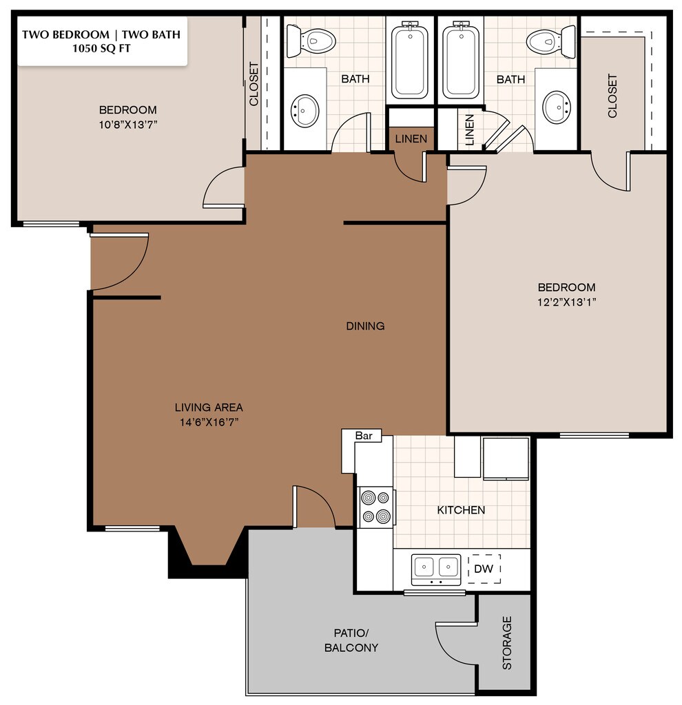 2 Beds, 2 Baths, 1050 sq ftAvailable NowAvailability Details