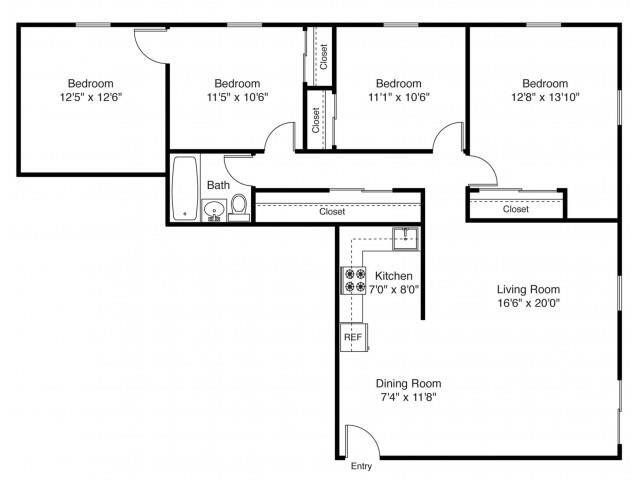 Apartment Model: 4 Bedroom 1 BathroomCall For Rates4 Bedroom, 1 Bath, 1800 sq ftUnavailable![]()