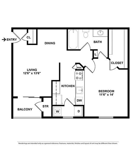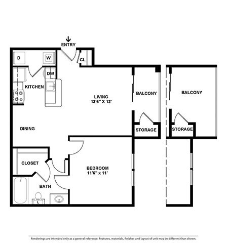 1 Bed, 1 Bath, 665 sq ftAvailable NowModel Gallery