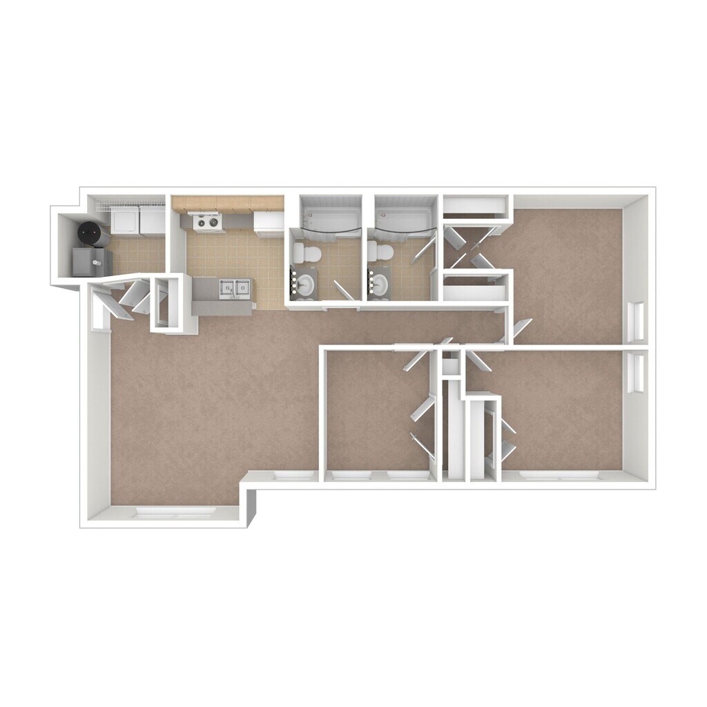 Two Bedroom Two Bathroom Affordable - Income Limit - Floorplan 3 3 Bedrooms