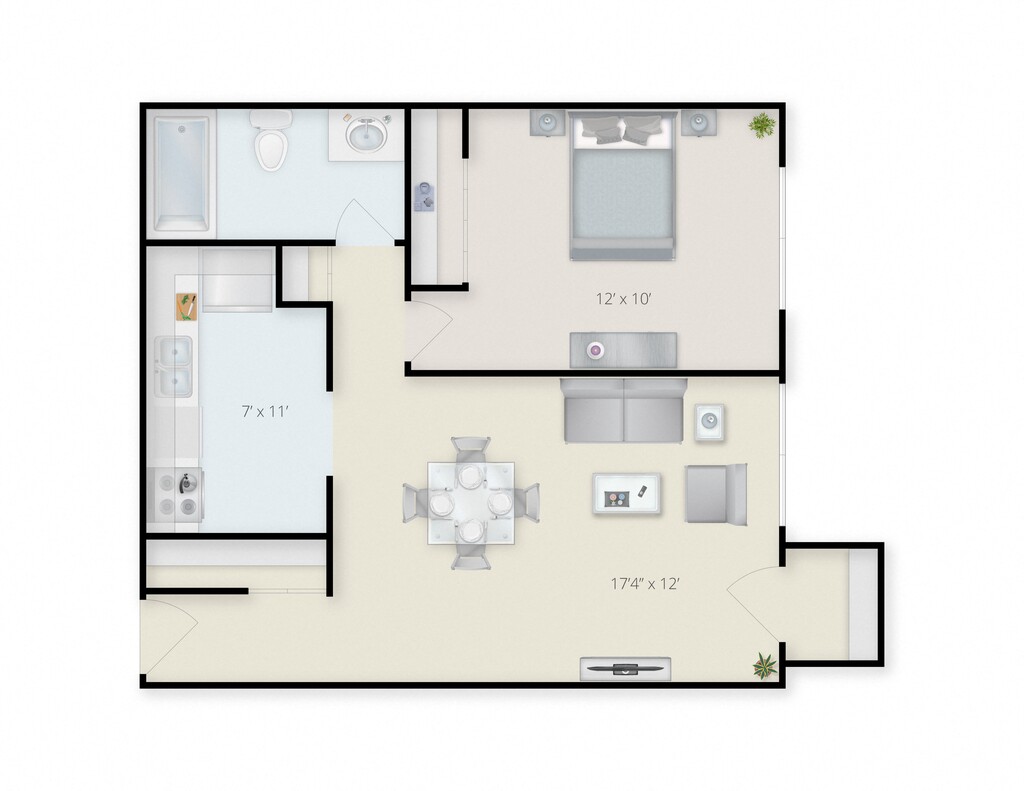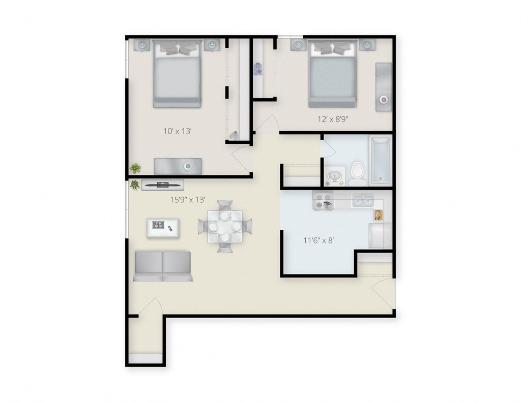 2 Beds, 1 Bath, 700-741 sq ftAvailable Oct 11Largest 2 BedroomThis is the largest 2 Bedroom at this PropertyModel Gallery