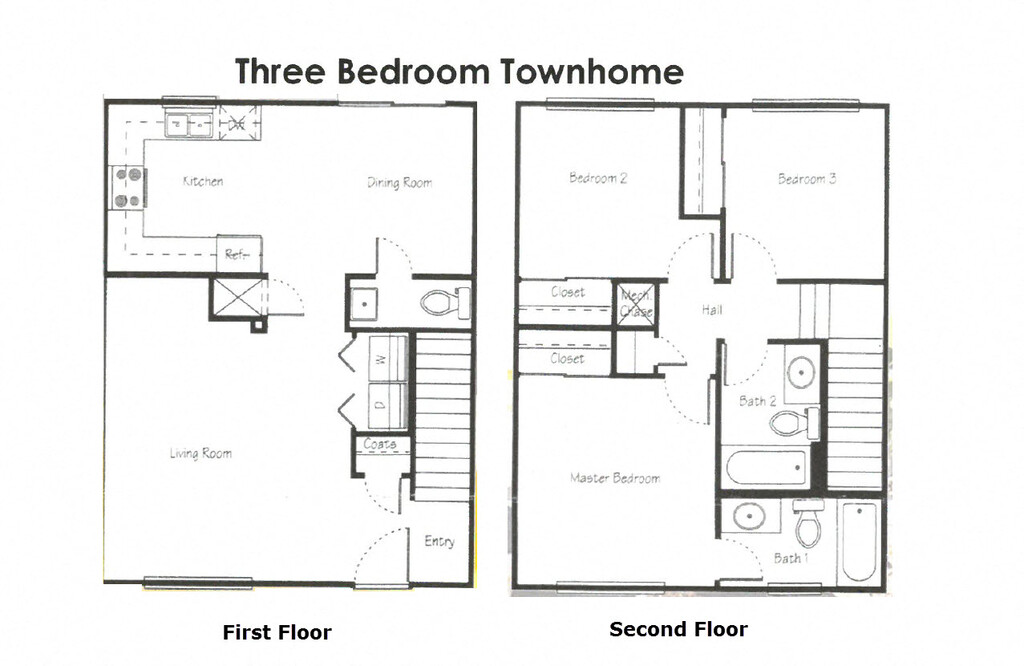 2 Bed 2.5 bath Townhome - Floorplan 1 3 Bedrooms