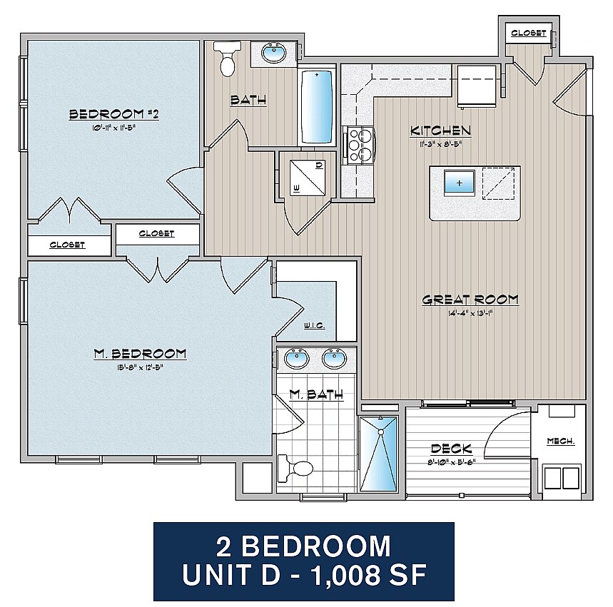 2 Beds, 2 Baths, 1014 sq ftAvailable Nov 12Largest 2 BedroomThis is the largest 2 Bedroom at this PropertyModel Gallery