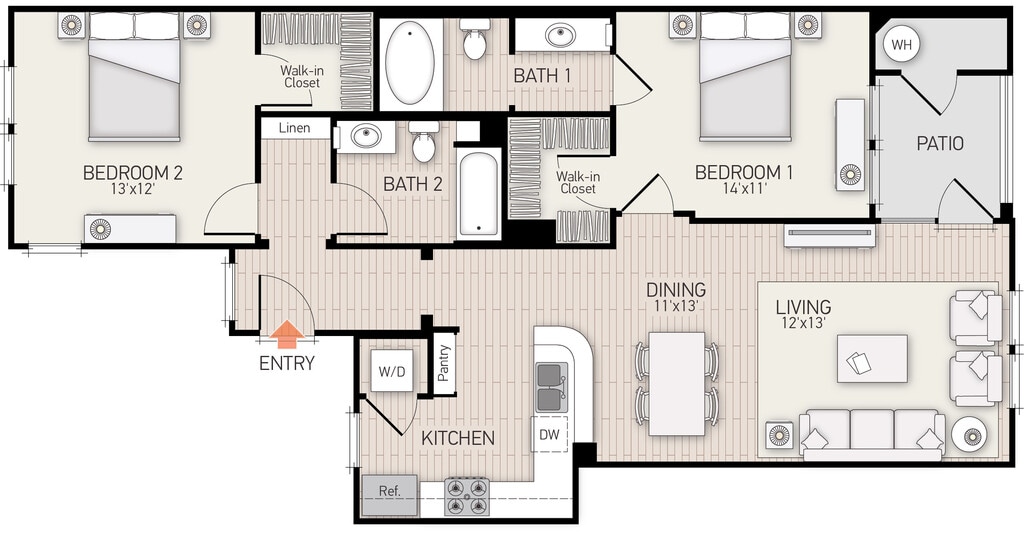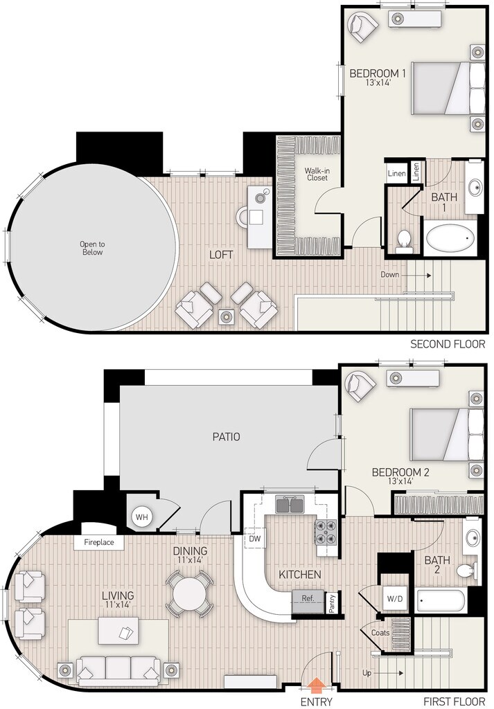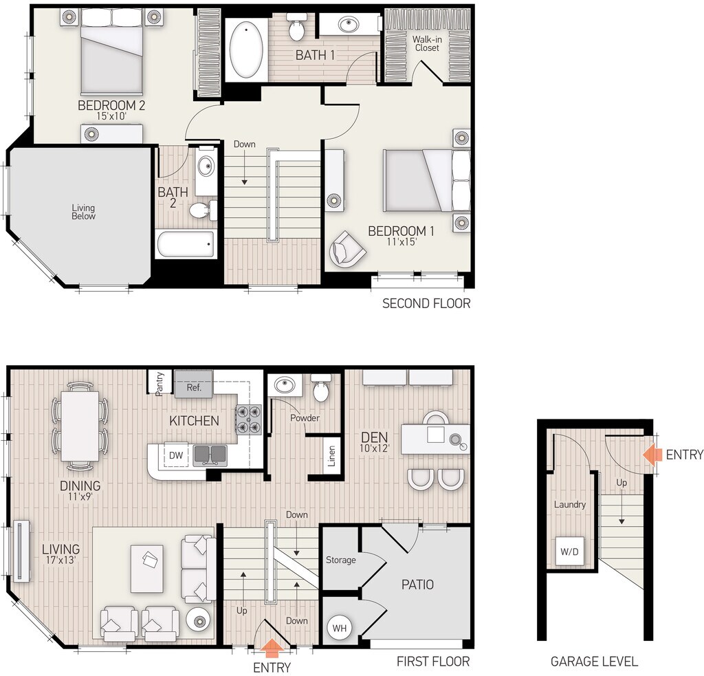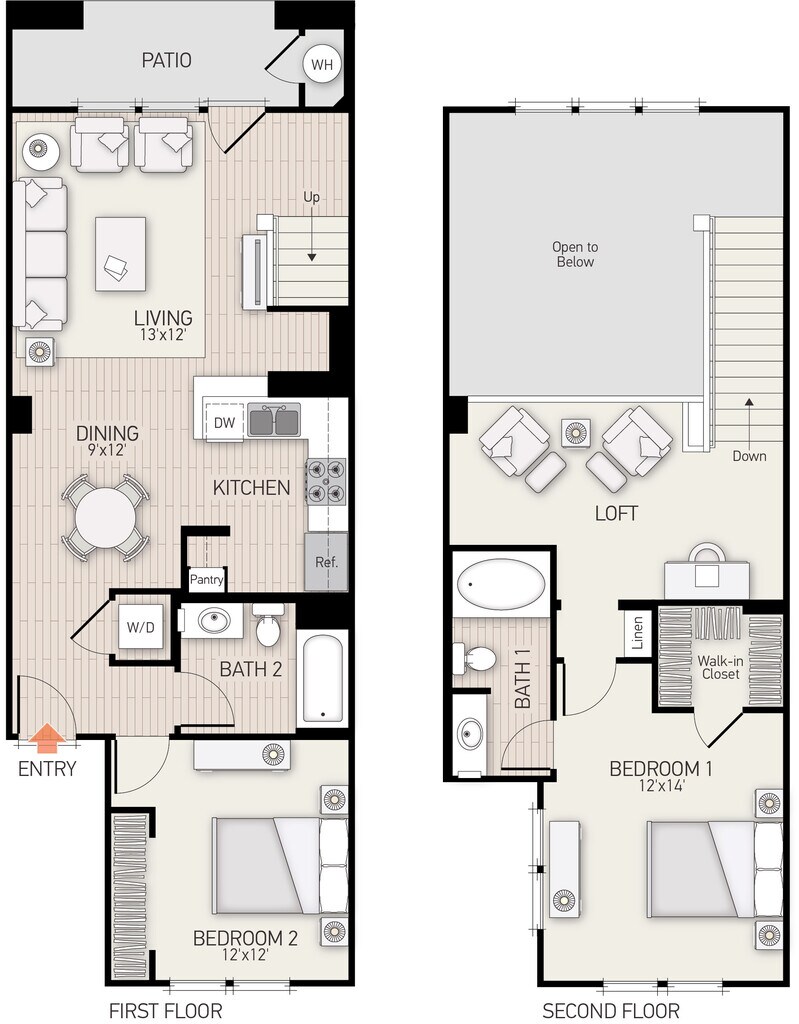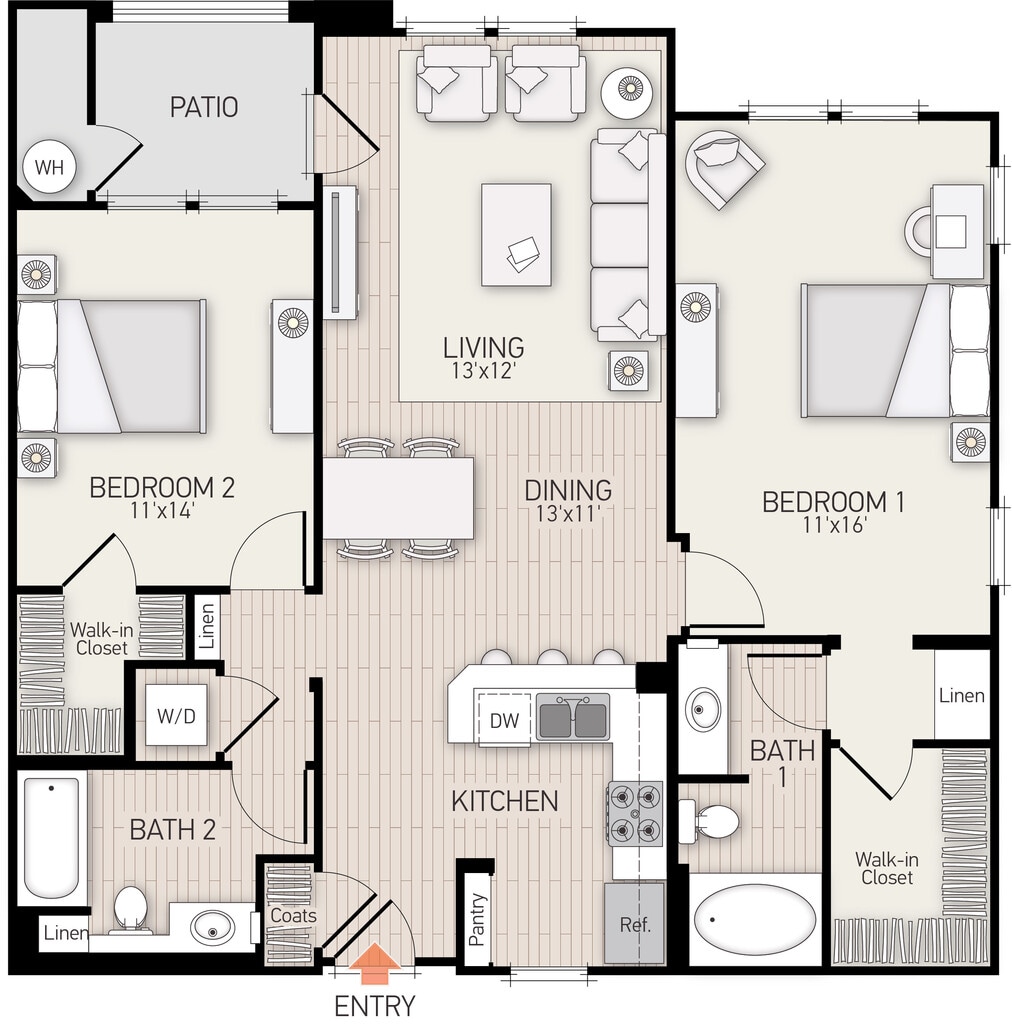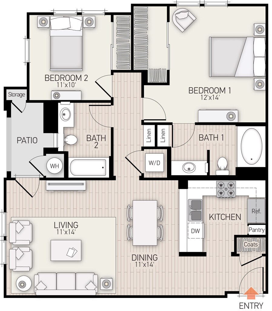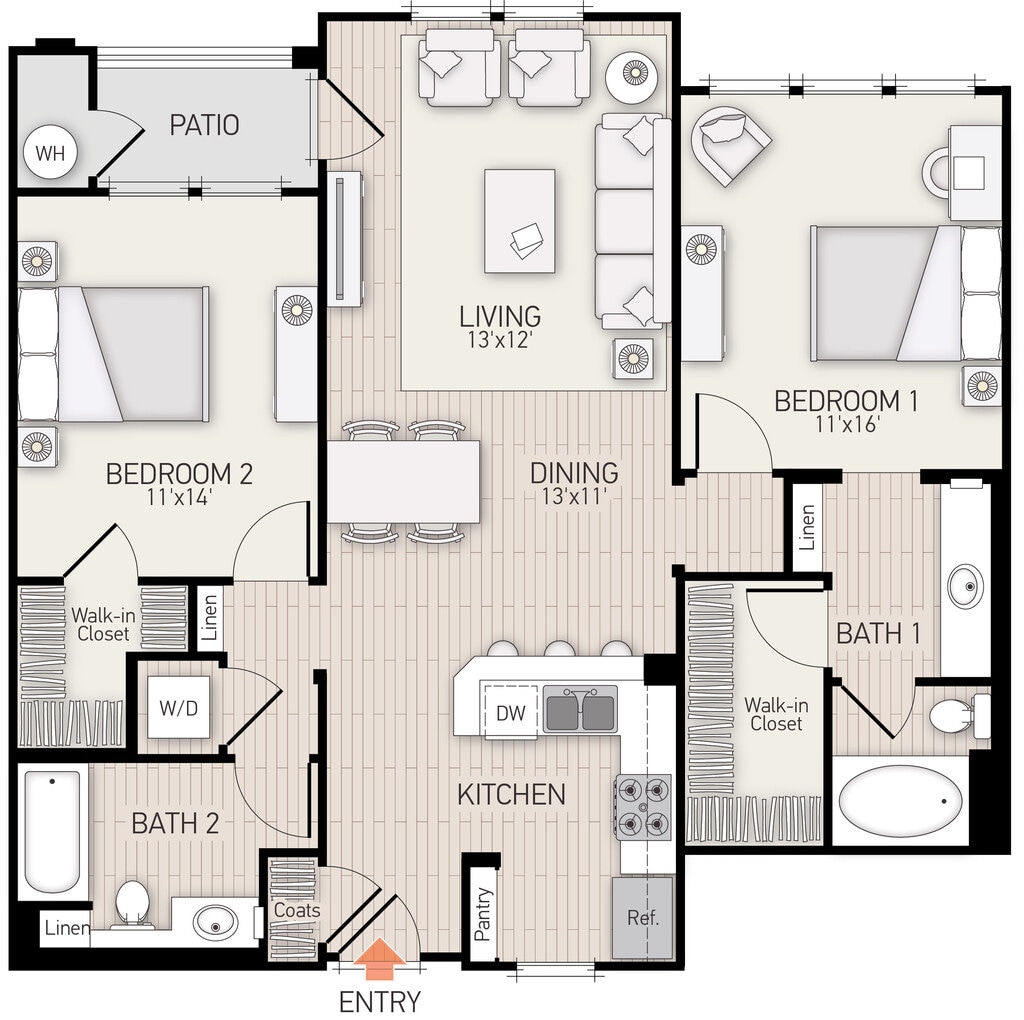 2 Beds, 2 Baths, 1268 sq ftAvailable NowModel Gallery