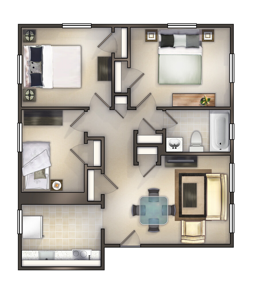 3 Beds, 1 Bath, 697 sq ftModel Gallery