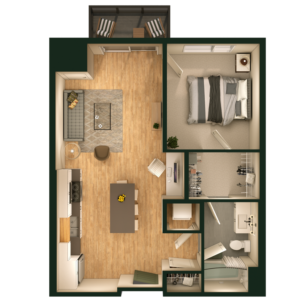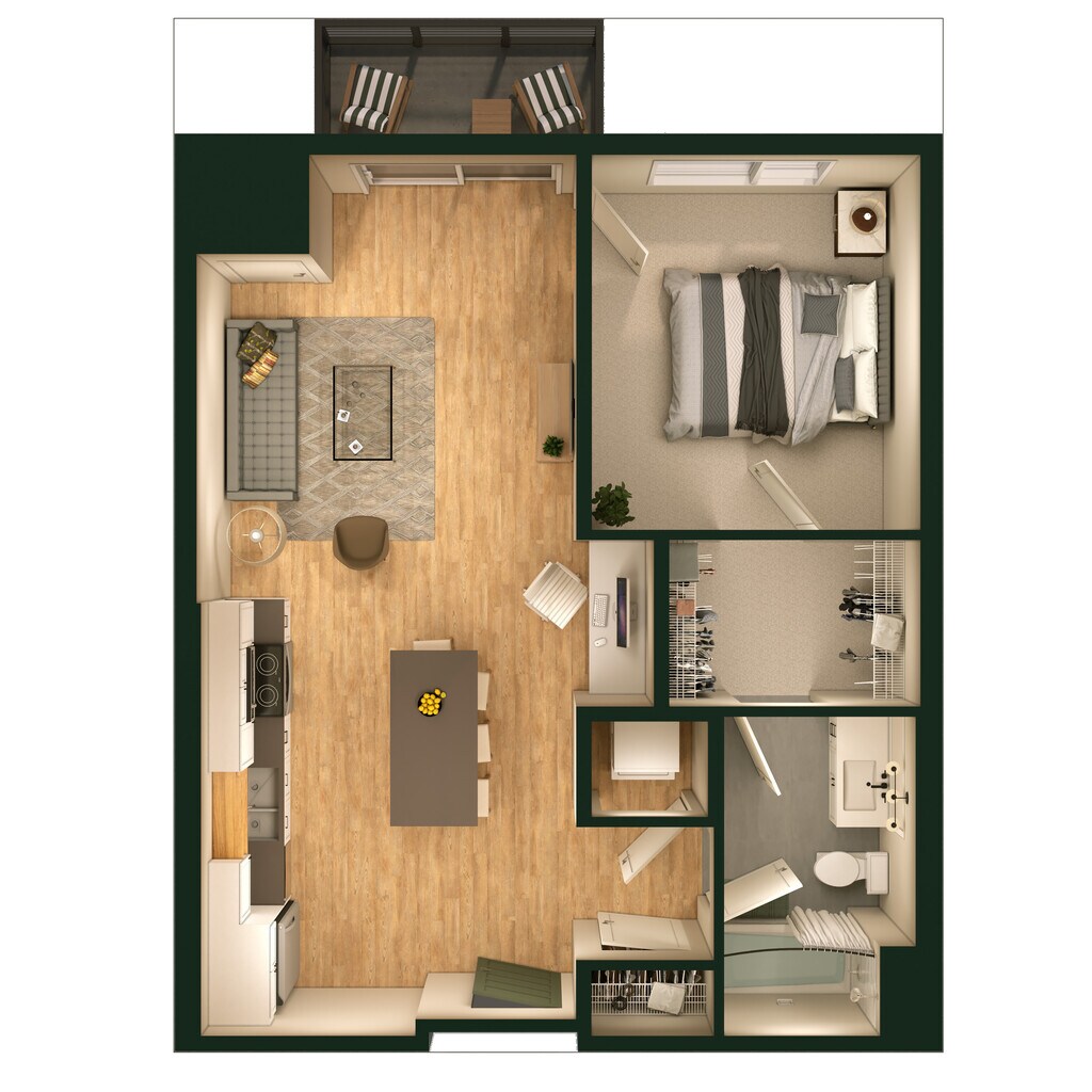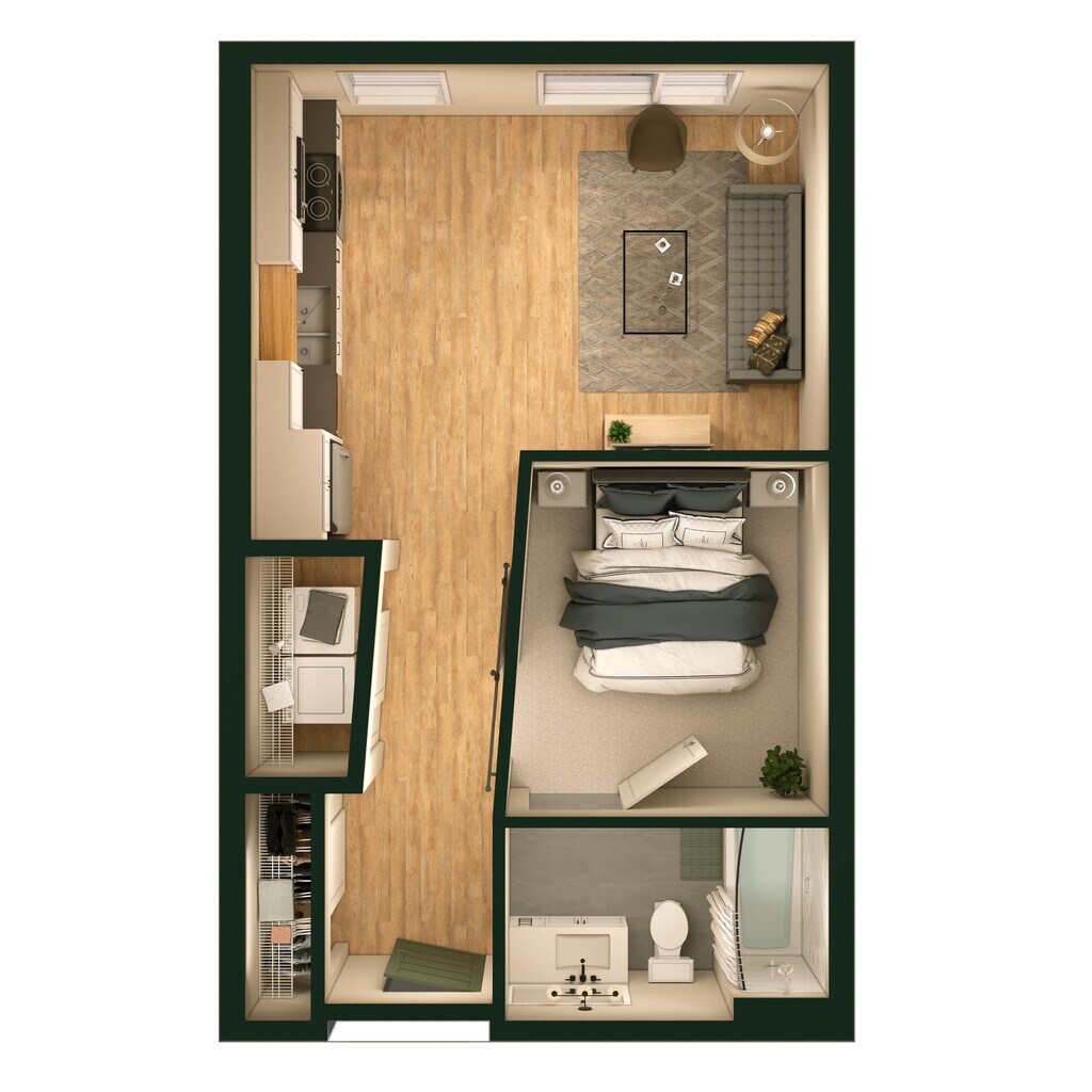 Studio, 1 Bath, 545 sq ftPlus FeesAvailable February 3, 2026Model Gallery