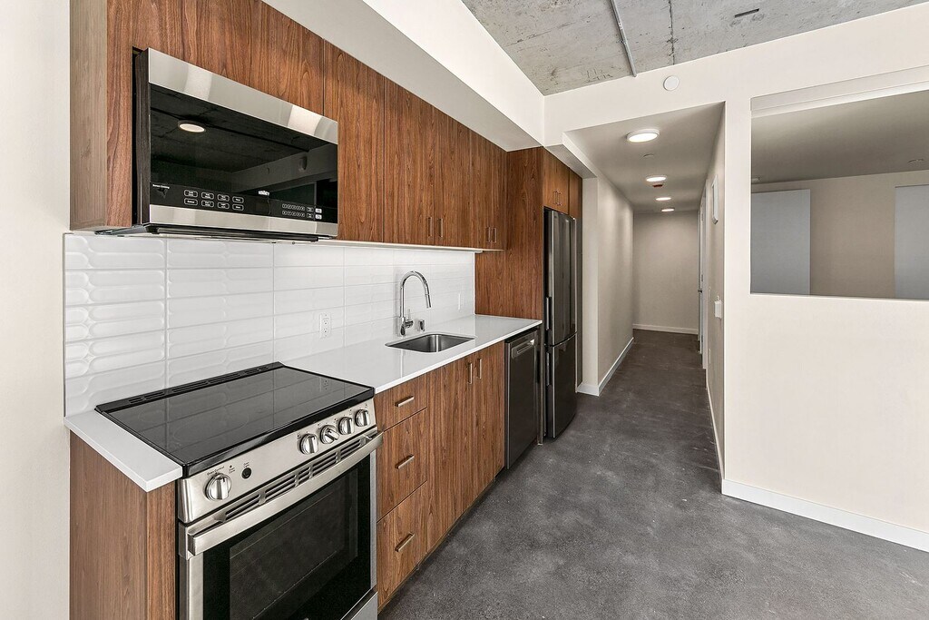 Brand new studio, 1- and 2-bedroom apartments for rent in Seattle’s Fremont neighborhood The Modern Classic Collection at Fremont View Apartments are homes in a brand-new, mid-century modern inspired boutique building in the Center of the Universe (aka Seattle’s Fremont neighborhood). You’ll know that you’ve arrived in the Center of the Universe when you look out the floor-to-ceiling glass windows or relax on your private deck to drink in the incredible views. The Seattle skyline, Mount Rainier, the Olympic Mountains and the intricate metalwork of the Aurora Bridge span the horizon. And the location? Smack dab in the middle of everything. Quiet, tree-lined residential streets out your doorstep to the north and Fremont’s downtown, a hub of action, breweries, restaurants and fun, just steps to the south. In keeping with Fremont’s independent meets outdoorsy neighborhood vibe, Fremont View Apartments incorporates quirky, thoughtful and clever artwork throughout the building, adding to its smart personality. Homes offering custom built-ins finished in gorgeous walnut, walk-in closets with upgraded and customizable closet systems and sleek modern kitchens may raise your temperature with excitement. But never fear, each home has integrated air conditioning to bring the flush back down. With only 29 homes in this privately owned and managed building, the apartments are being snapped up quickly. Come tour today!