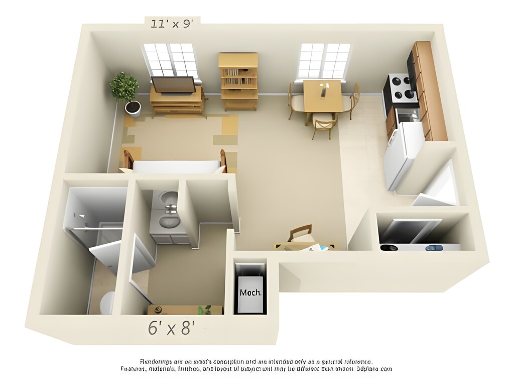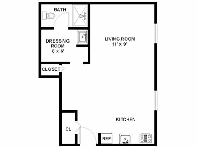 Studio, 1 Bath, 450-550 sq ftAvailable NowModel Gallery