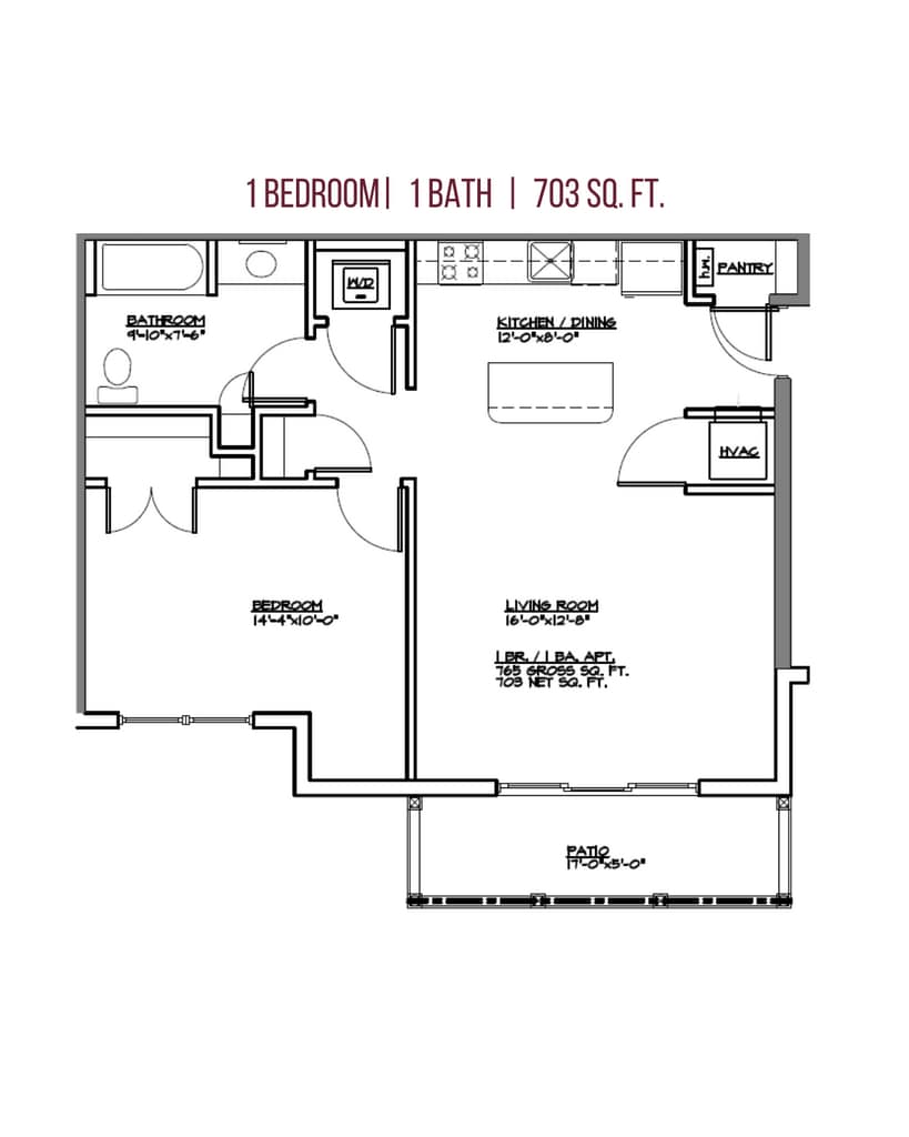 1 Bed, 1 Bath, 703 sq ftAvailable NowModel Gallery