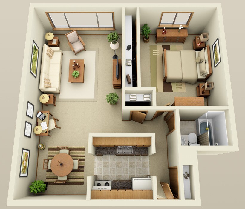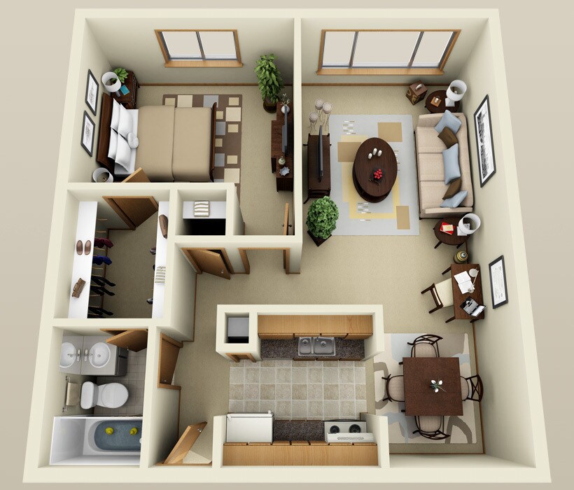 1 Bed, 1 Bath, 635 sq ftModel Gallery