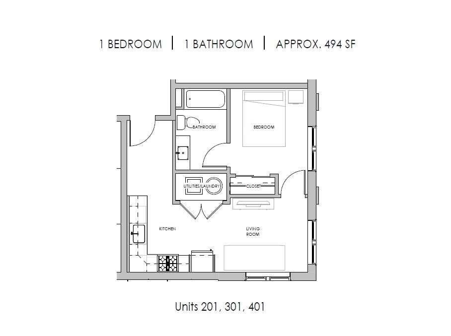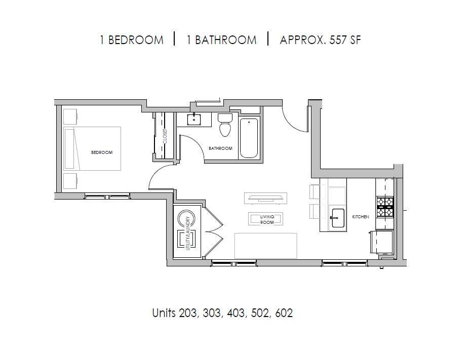 One Bed One Bath - Floorplan 1 Apartment Unit: 204Apartment Model: One Bed One Bath$1,5851 Bedroom, 1 Bath, 527 sq ftAvailable Now![]()