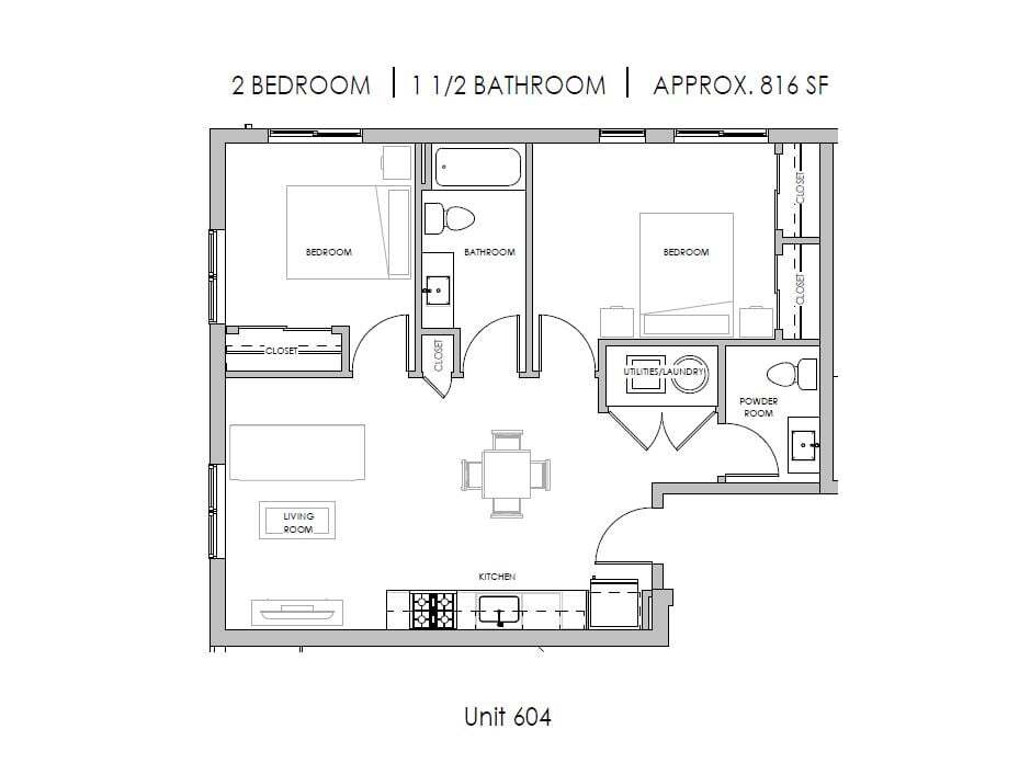Two Bedroom One Half Bath - Floorplan 1 Two Bed Two Bath