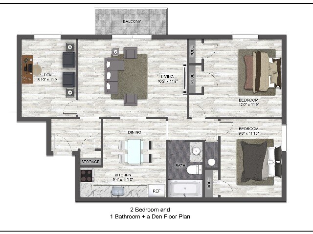 Apartment Model: 2BR 1BA w/ DENFrom $1,2702 Bedroom, 1 Bath, 859 sq ftAvailable November 18, 2025![]()