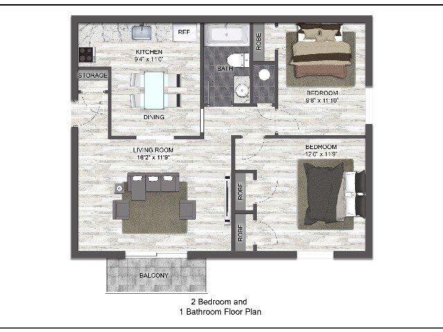 Apartment Model: 2BR 1BAFrom $1,1992 Bedroom, 1 Bath, 752 sq ftAvailable Now![]()