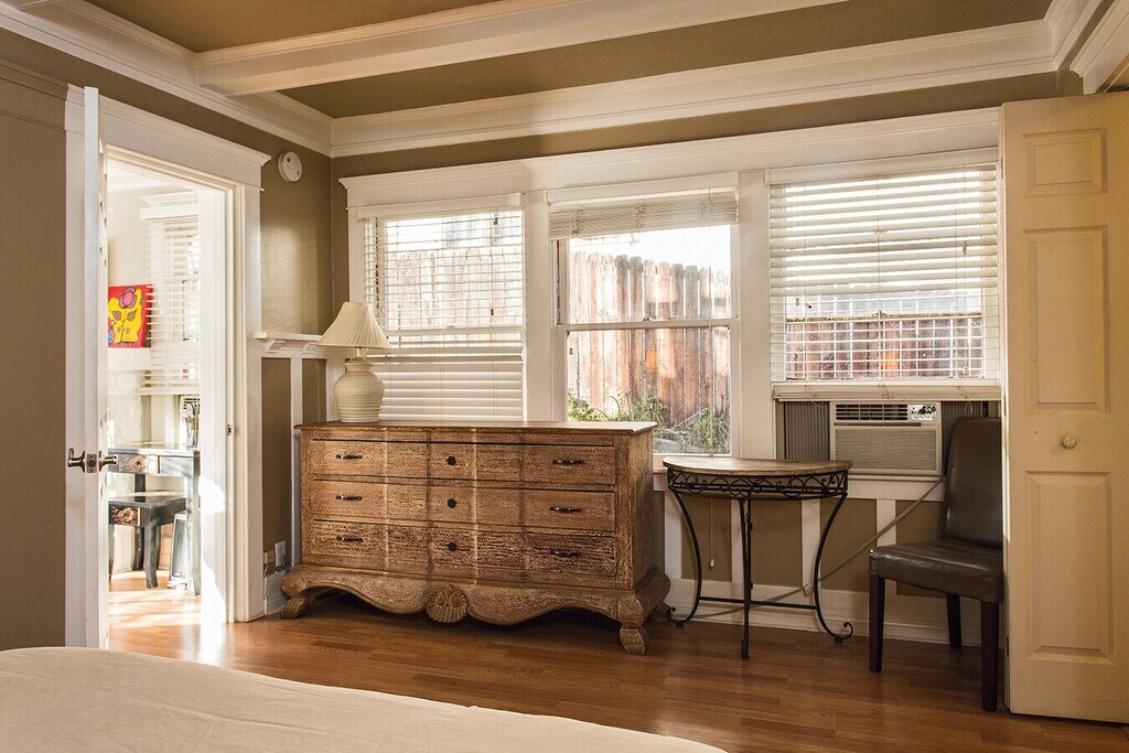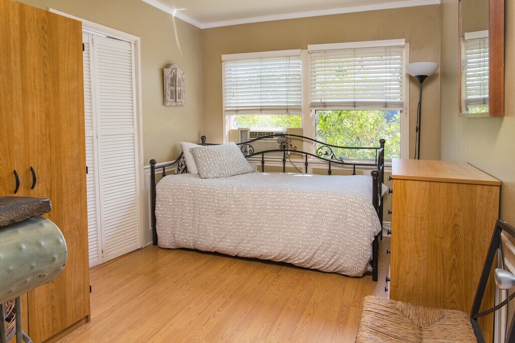 Welcome to your fully furnished home in the heart of Hollywood. Nestled on a quiet side street just one block from Hollywood & Vine, this charming property offers a selection of beautifully maintained 1 and 2 bedroom apartments ideal for short-term or extended stays. Each unit features a private entrance with keyless entry, spacious living areas, fully equipped kitchens, comfortable bedrooms, and full bathrooms stocked with essential amenities. High-speed 5G internet, HD satellite TV, and complimentary laundry facilities are included for your convenience. Enjoy peaceful mornings on your private porch or balcony, or relax in the lush backyard garden complete with bamboo landscaping, a fountain, gazebo, and BBQ area. The property is centrally located within walking distance of the Pantages Theatre, local cafes, grocery stores, restaurants, and public transportation. With a 95 walk score and a quiet, garden-like atmosphere, this location offers the perfect blend of city accessibility and residential comfort. Whether you're here for business, study, relocation, or leisure, you'll find everything you need for a comfortable stay.