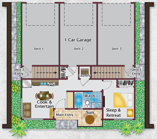2 bed 1.5 bath - Floorplan 2 3-Story Townhome w/ 1 car attached garage