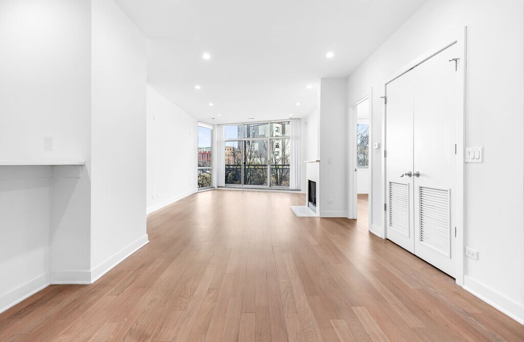 Spacious 3bed/2bath features chef's kitchen with stainless steel appliances including double oven, wine fridge, oversized fridge, quartz countertops, and abundant custom cabinetry. Unit also features hardwood floors throughout, private balcony, fireplace, in-unit washer/dryer, overhead lighting, new window treatments with blackout shades in bedrooms, and more! Primary suite features walk-in closet, separate tub and steam shower, and double vanity. Unit 104 is on the first floor, providing quick access without being ground level. Boutique residence located steps from Fulton Market dining and retail, as well as convenient transportation access. Don't miss out on this beautiful apartment home! *Pricing is net-effective inclusive of 2 months free on a 12-month lease.