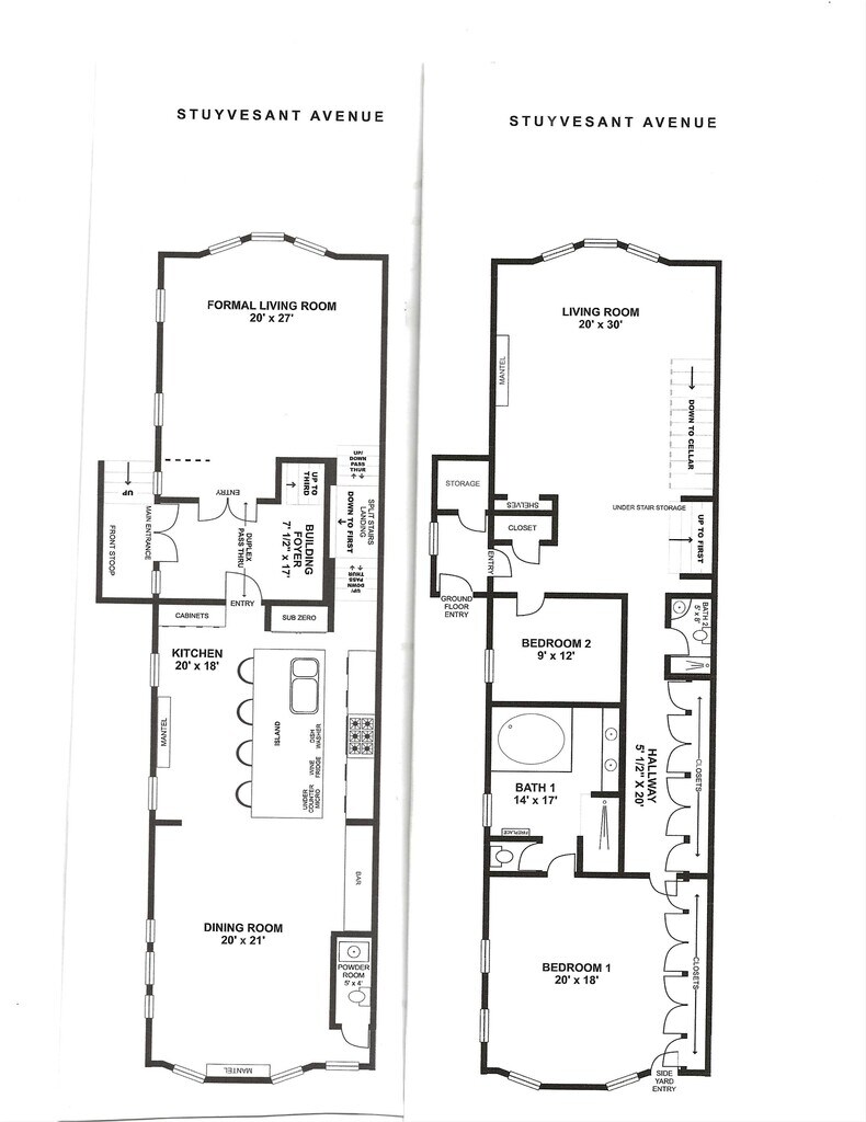 A furnished luxurious 2 Bedroom duplex apartment, designed for gracious living and working at home. Located in a 5-family historic townhouse in Stuyvesant Heights, Brooklyn, this 3600 sq ft duplex is fully restored with original details, soaring ceilings, stained-glass windows and hardwood floors throughout the apartment. There is a spacious designer kitchen with high-end appliances, including a wine fridge, sub-zero refrigerator, under counter microwave, lots of cabinet space and marble counter tops. The formal dining room (20'x 27') has a bar area and accommodates a large sit-down dinner party; a powder room is also on that floor. The ground floor is accessible via stairs near kitchen or enter from outside. Designed for private living space, the ground floor includes a spacious sitting room, master bedroom suite with a wall of closets and a bathroom with, shower and jacuzzi tub. Bedroom #2 is ideal for an office or a child's room and has easy access to a second bathroom. Storage space, laundry room and access to outdoor space is all accessible from ground floor entrance. Rental includes all utilities, dishwasher and washer/dryer and gated outdoor space.
