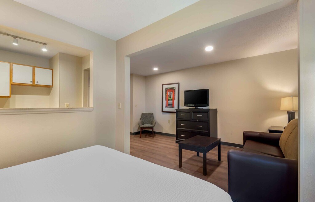 Enjoy a fully furnished studio suite in our hotel at an affordable rate with free wi-fi, free utilities and free premium cable. Each studio suite has a full kitchen with full-size refrigerator, stovetop and microwave, and has a flexible workspace and plenty of storage. All our hotels are pet-friendly and have on-site guest laundry available. Plus, there are no long-term commitments and you can adjust your length of stay to meet your individual needs, subject to applicable property and/or local restrictions. Additional fees may apply. Booking restrictions and taxes apply. Rates and availability are subject to change without notice.