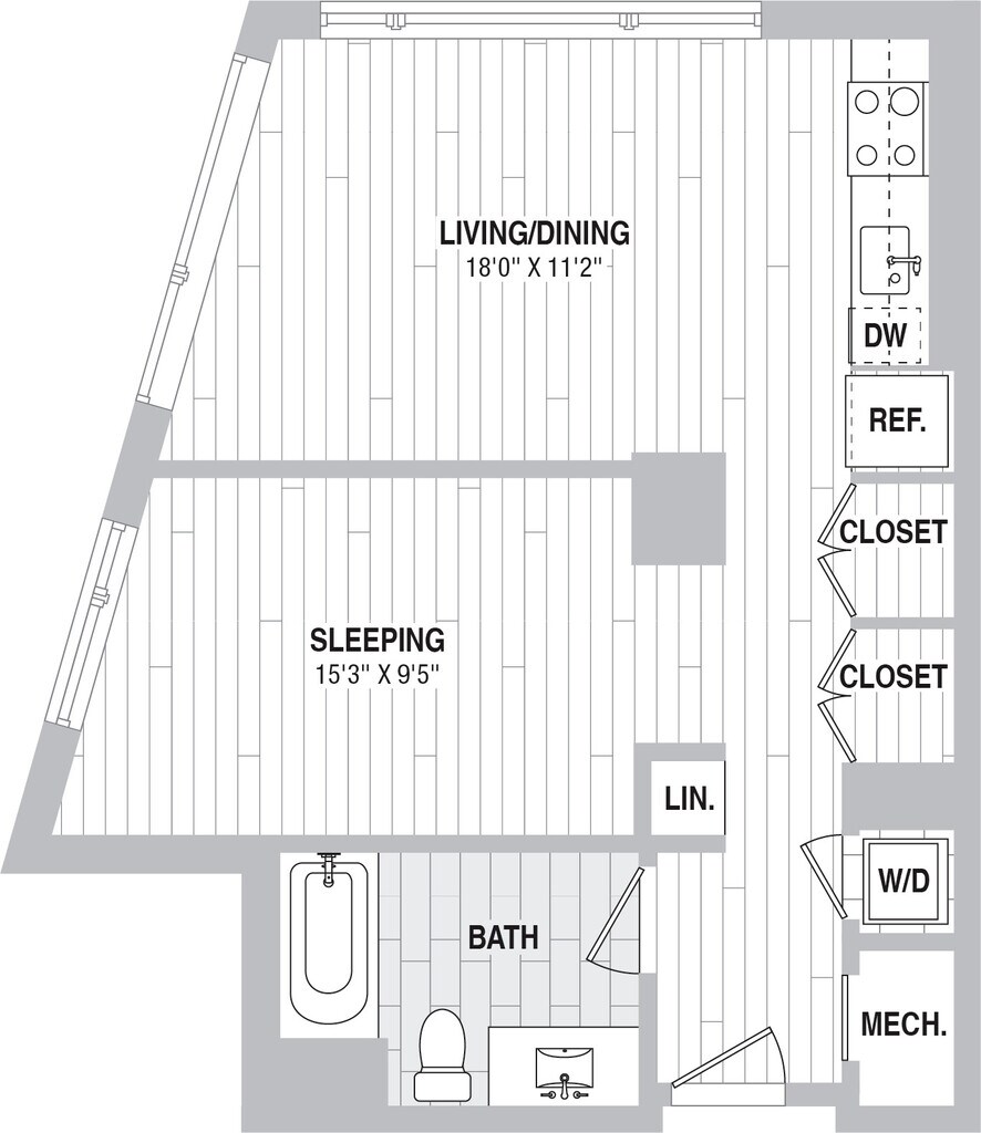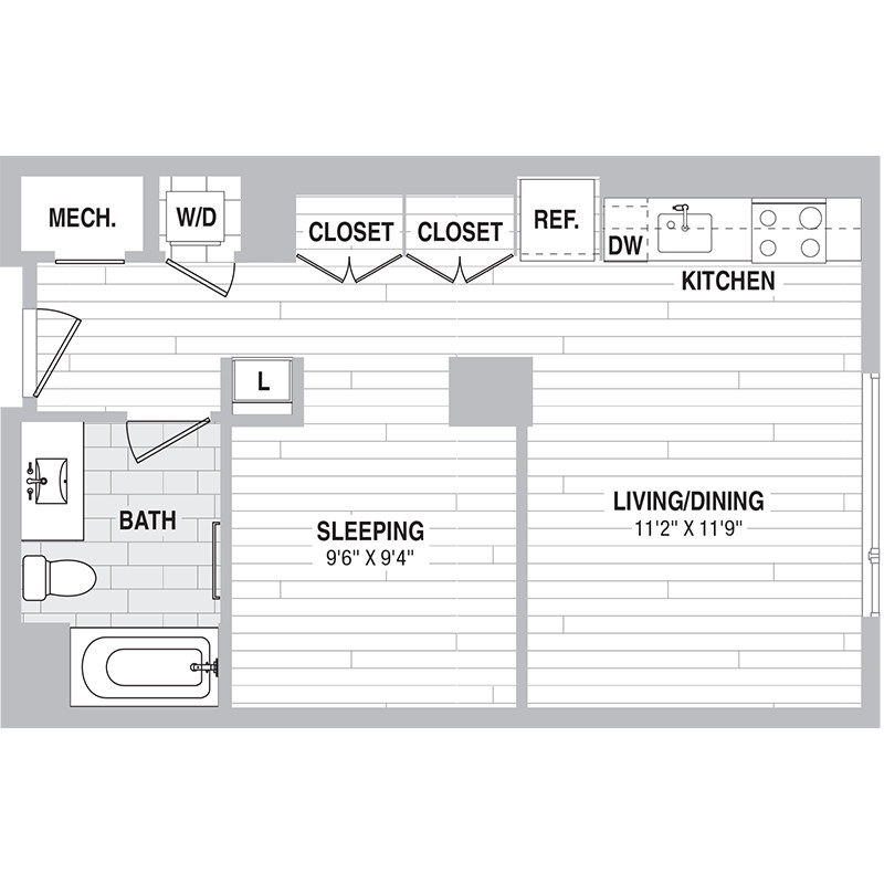 S5 - Floorplan 1 Apartment Unit: 410Apartment Model: S5$2,996Studio, 1 Bath, 549 sq ftAvailable NowFloorplan S7