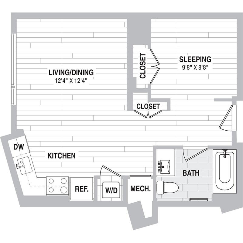 Studio, 1 Bath, 549 sq ftTotal Monthly PriceAvailable NowModel Gallery
