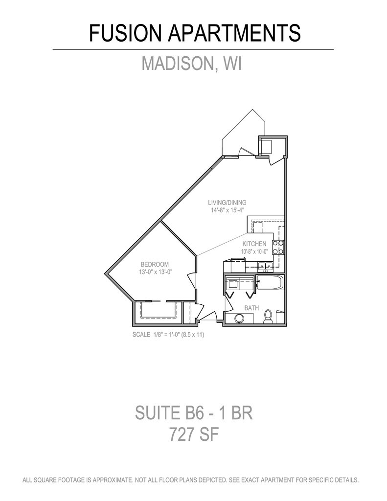 B7 - Floorplan 1 Apartment Unit: 115Apartment Model: B71 Bedroom, 1 Bath, 697 sq ftAvailable NowFloorplan B6