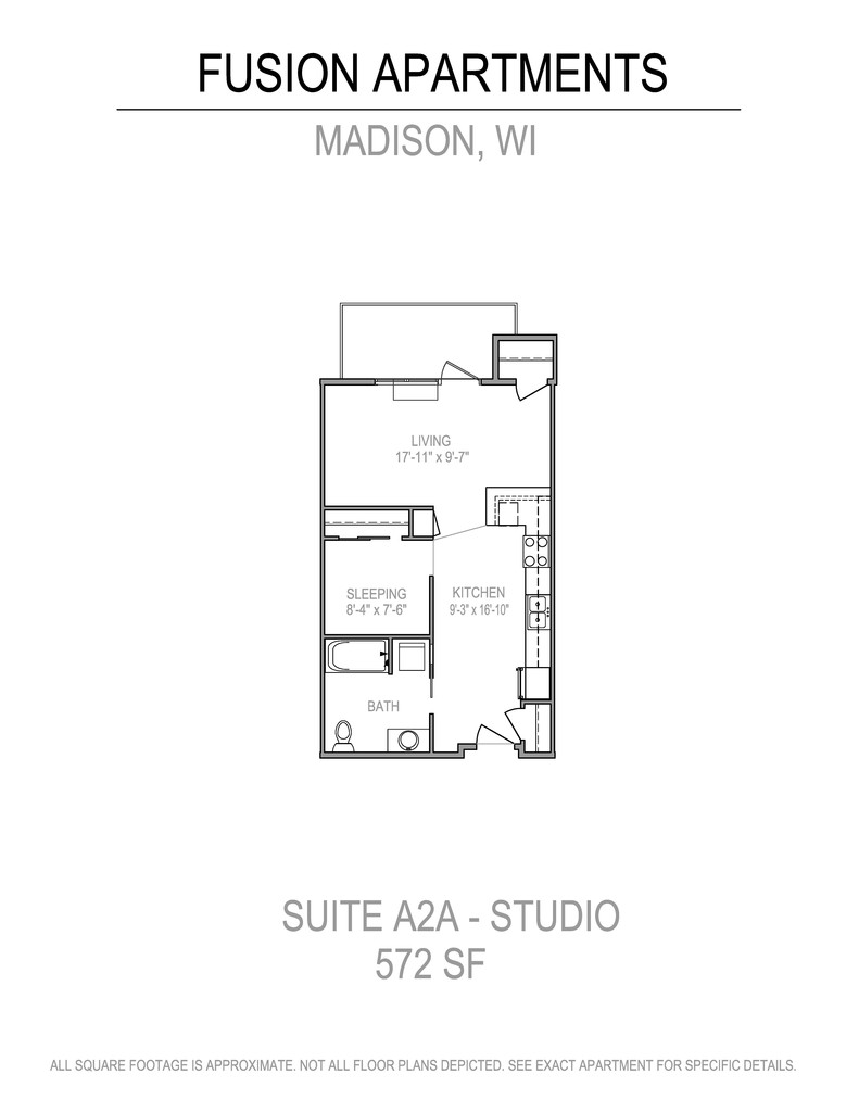 A2-A - Floorplan 1 Apartment Unit: 120Apartment Model: A2-AStudio, 1 Bath, 572 sq ftAvailable February 1, 2026Floorplan A1