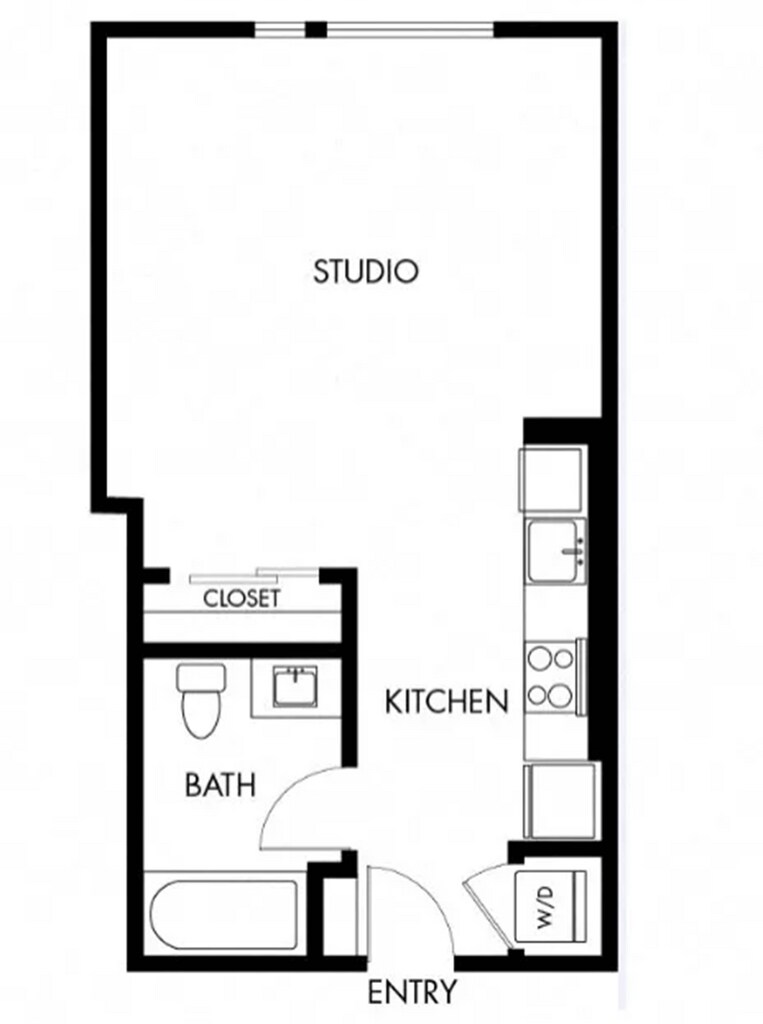Studio, 1 Bath, 532 sq ftAvailable NowLargest StudioThis is the largest Studio at this PropertyModel Gallery