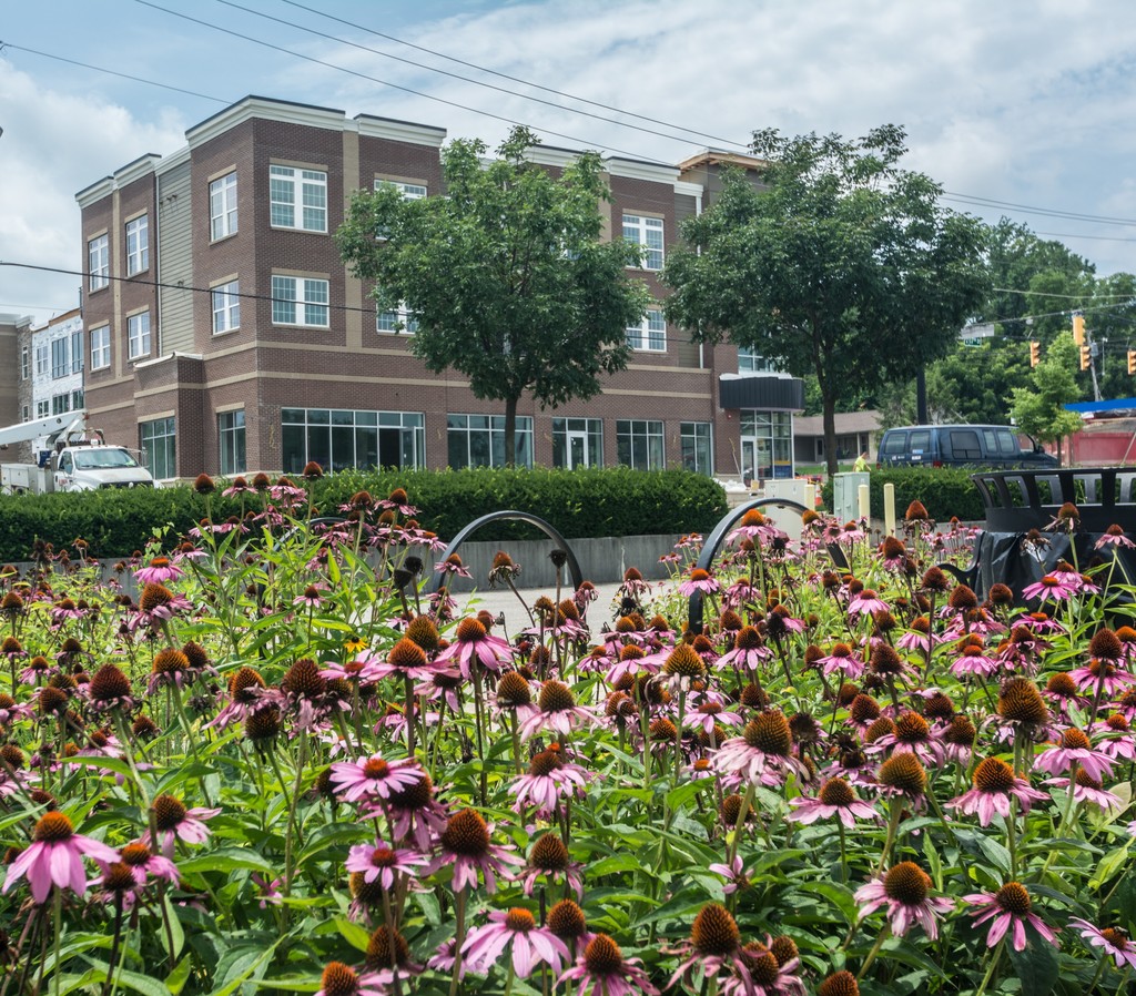 Corner unit overlooking the intersection of 17th & College, Showers Park.