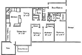 3 bed 2 bath 1600 sq ft - Floorplan 1 ![]()