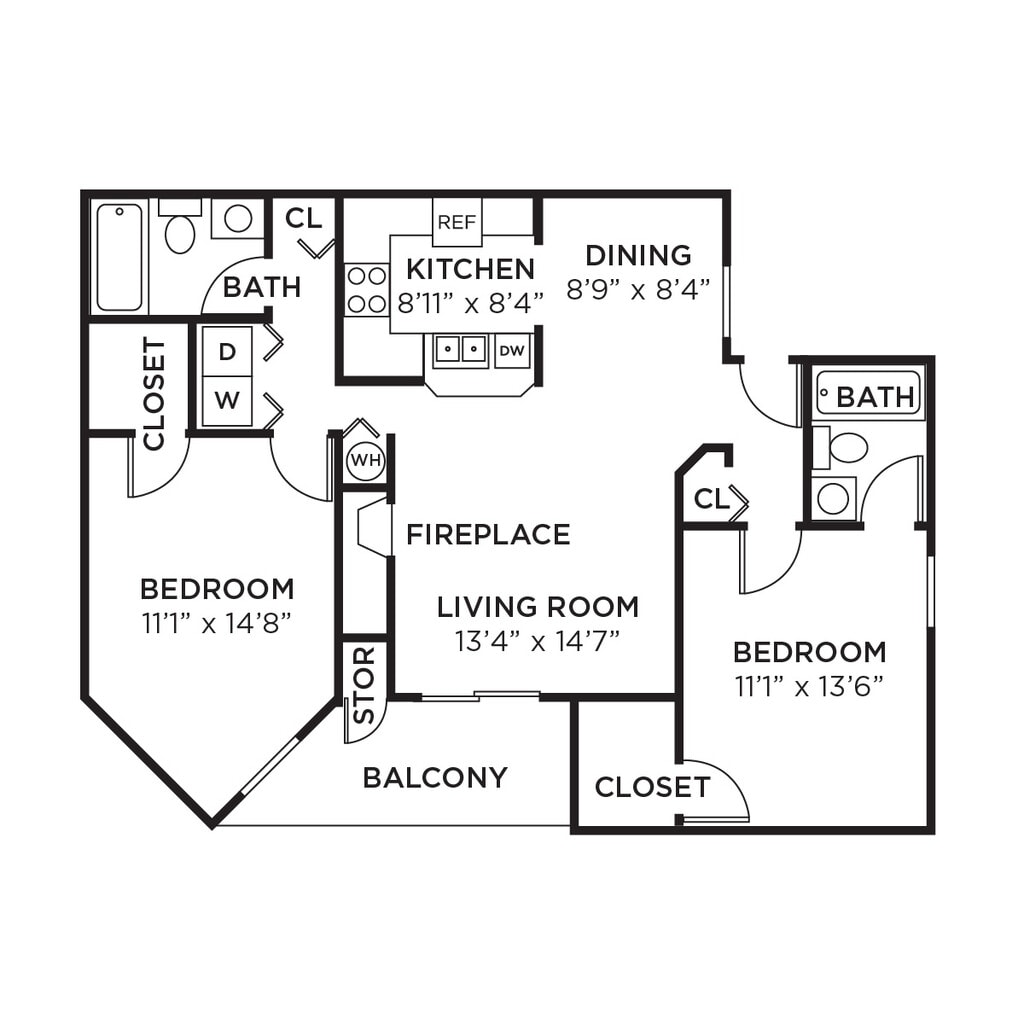 2 Beds, 2 Baths, 1000 sq ftAvailable NowModel Gallery