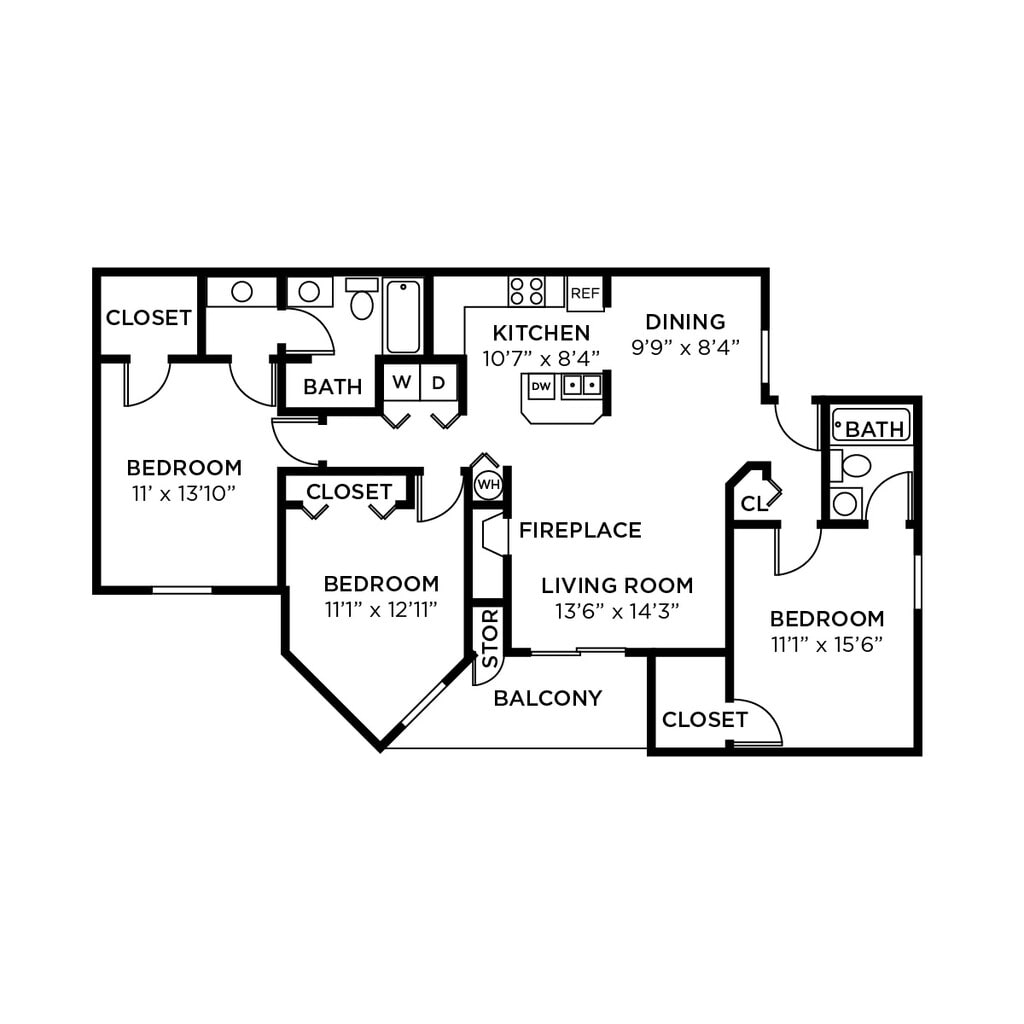 Apartment Model: Three BedroomCall For Rates3 Bedroom, 2 Bath, 1150 sq ftUnavailableThree Bedroom - Floorplan 1 Three Bedroom - Floorplan 2