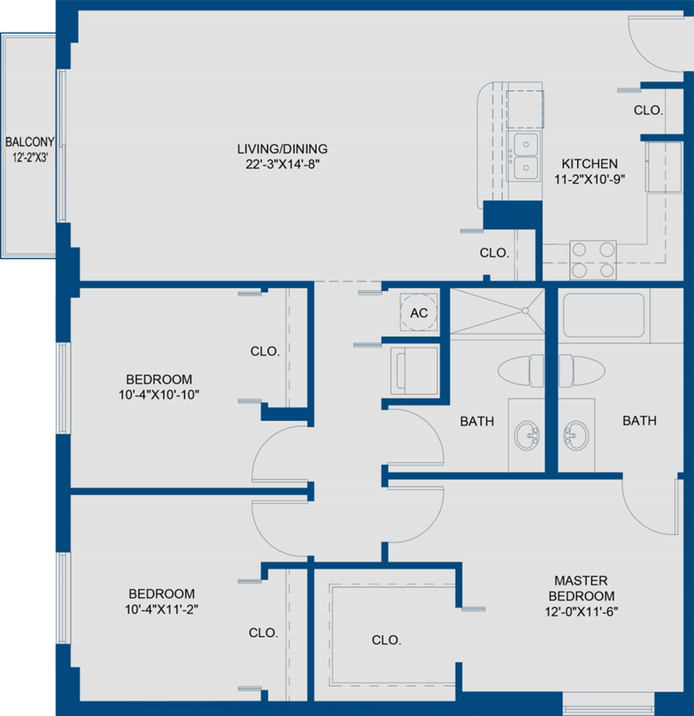 2 Beds, 2 Baths, 1049-1161 sq ftAvailable NowLargest 2 BedroomThis is the largest 2 Bedroom at this PropertyModel Gallery