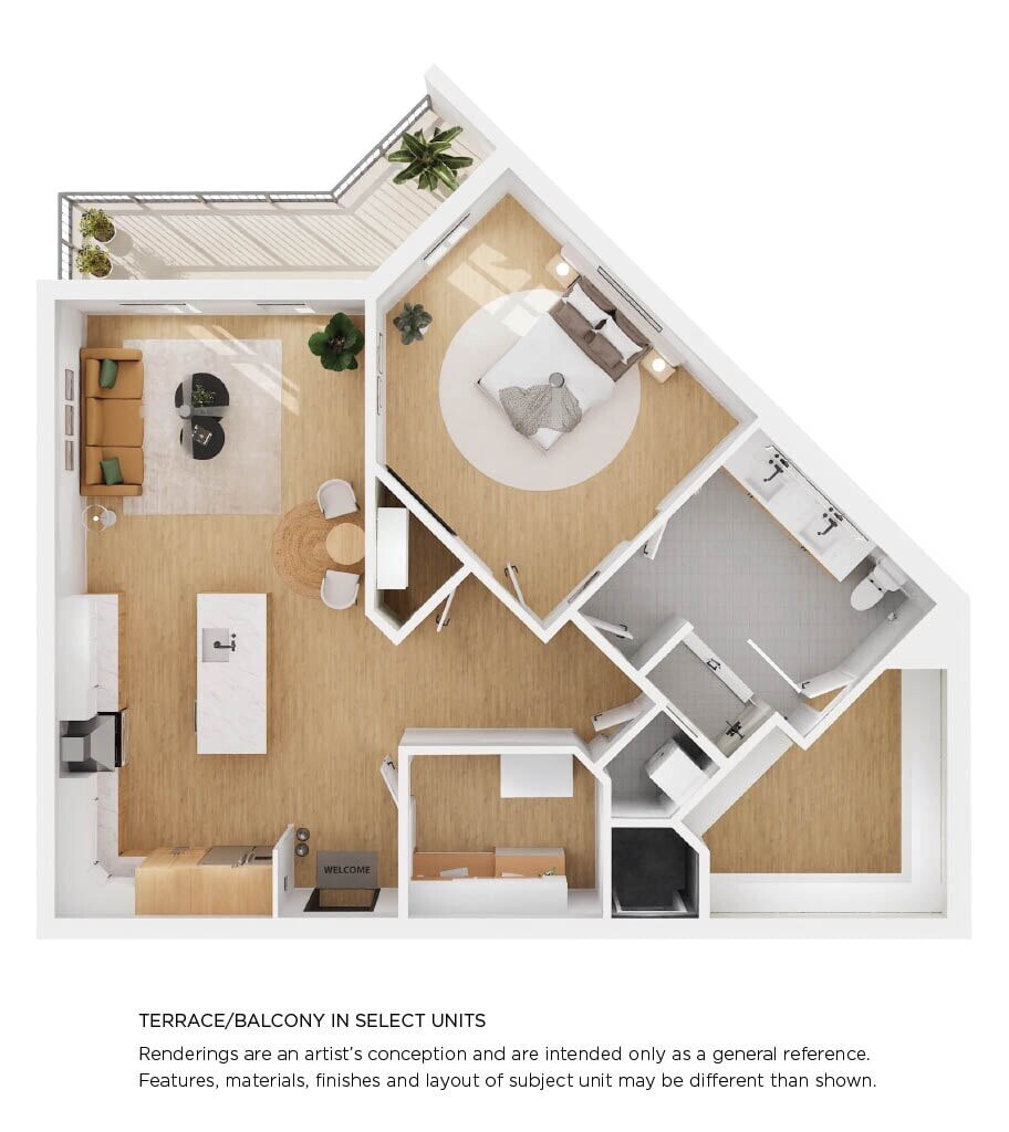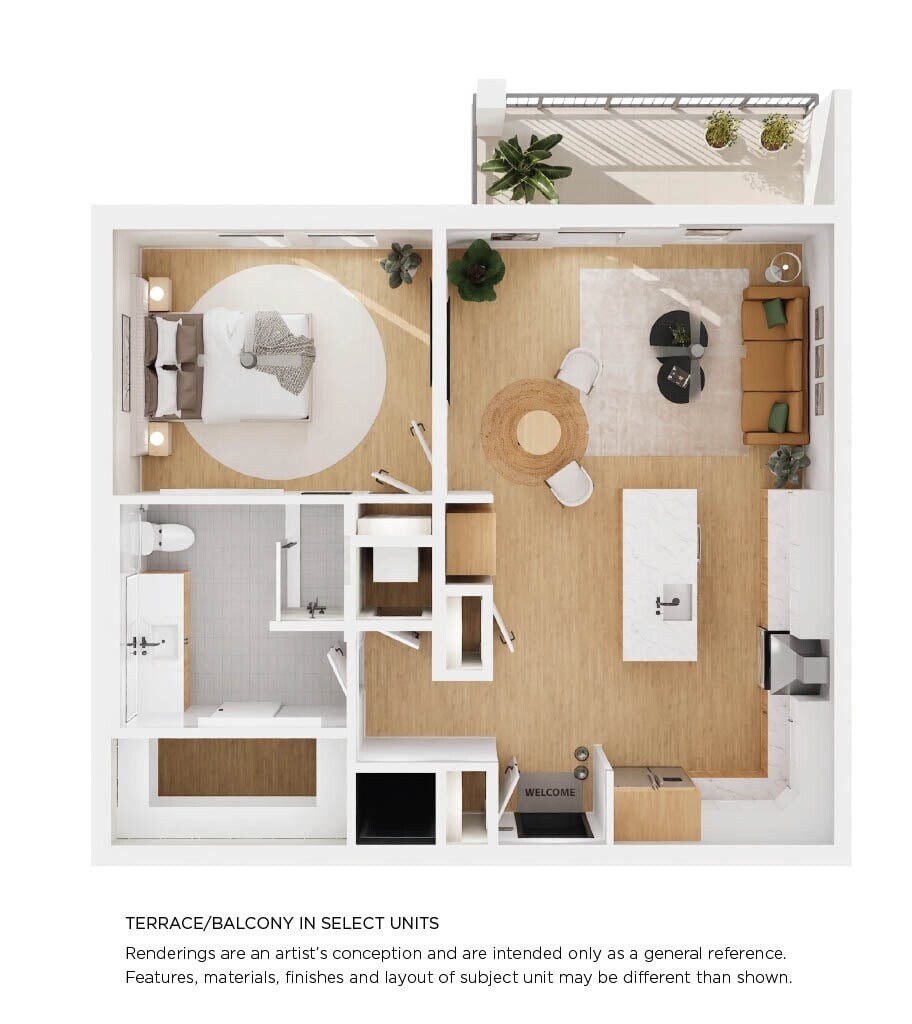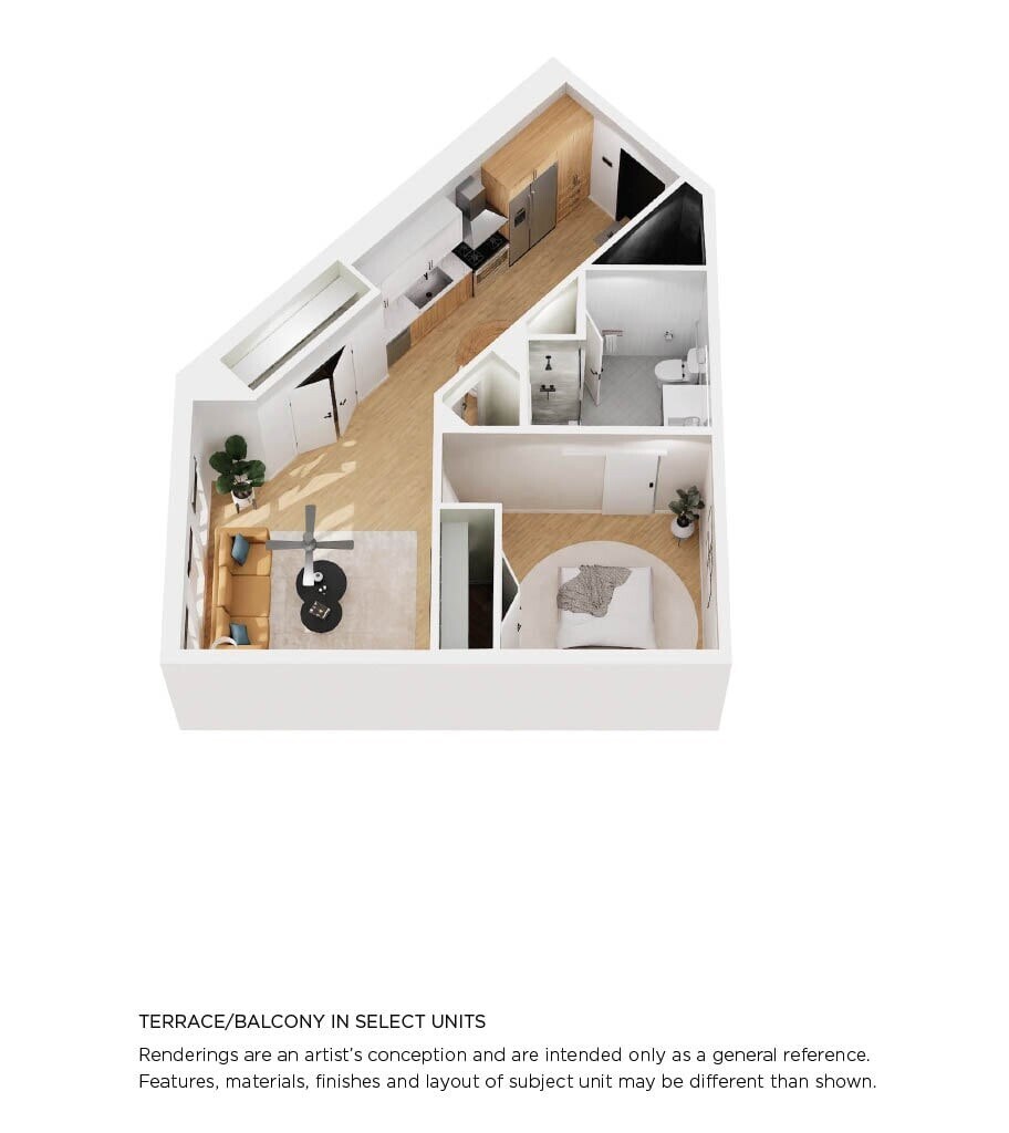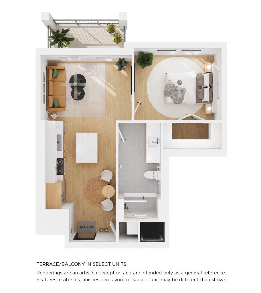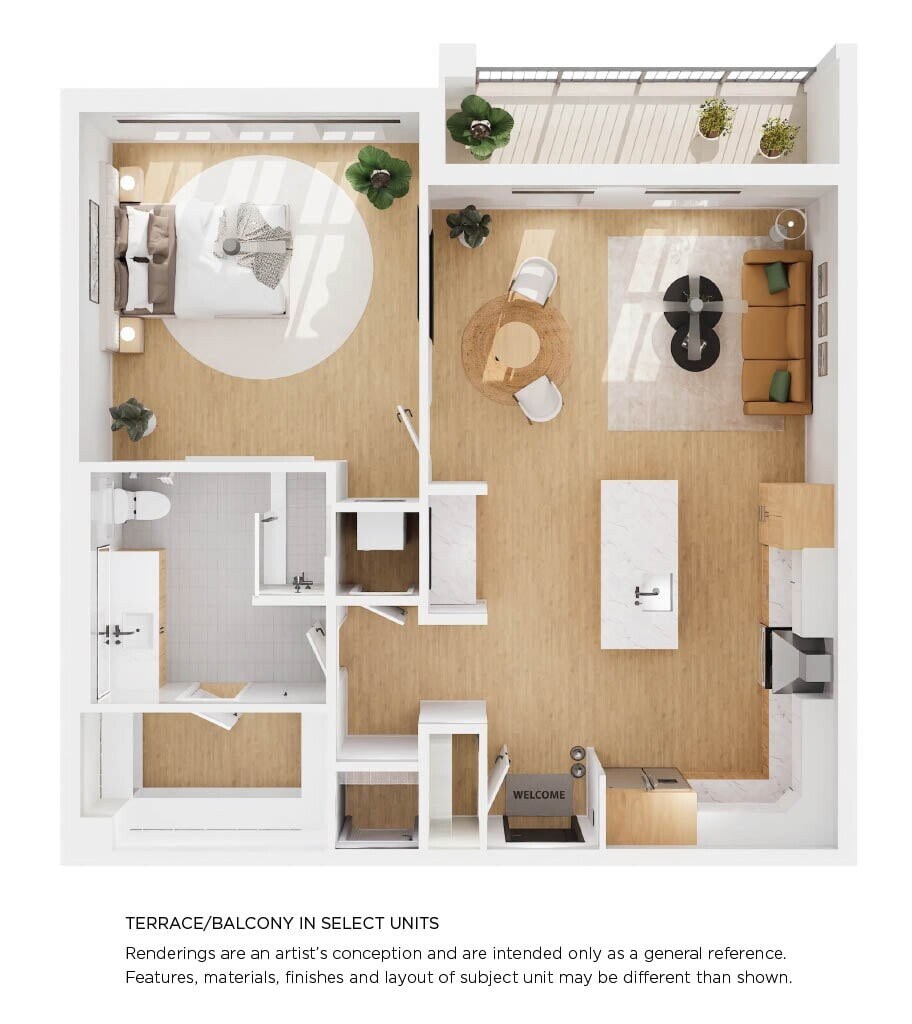 Studio, 1 Bath, 614 sq ftModel Gallery