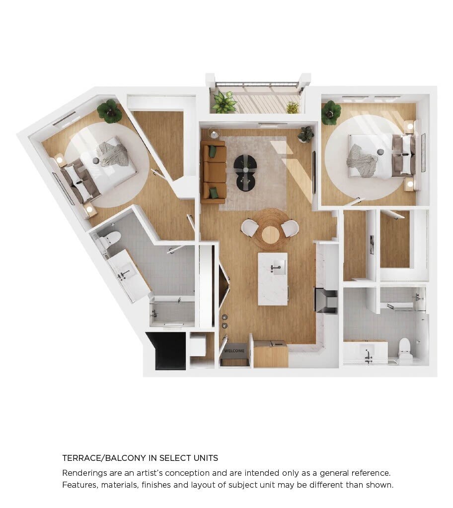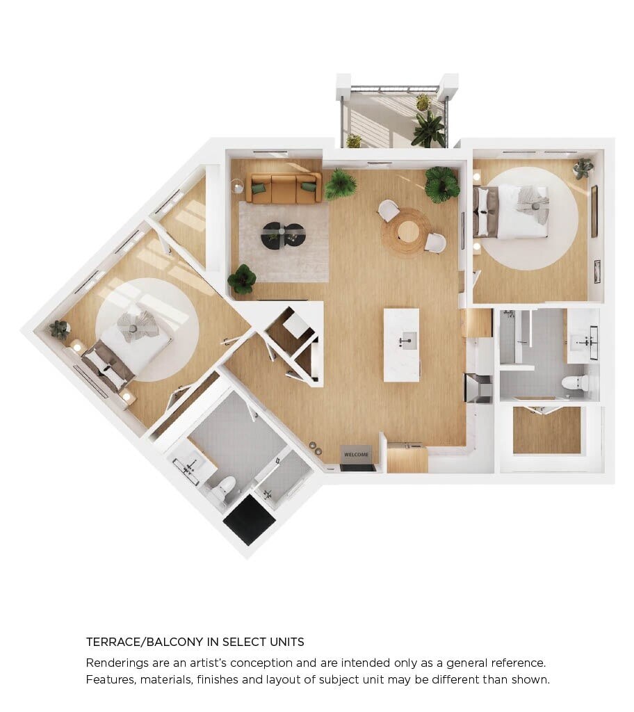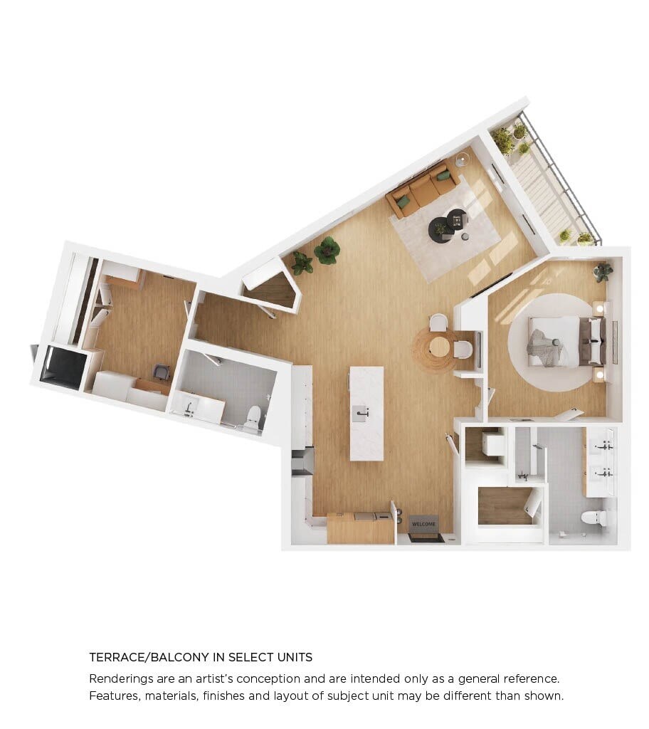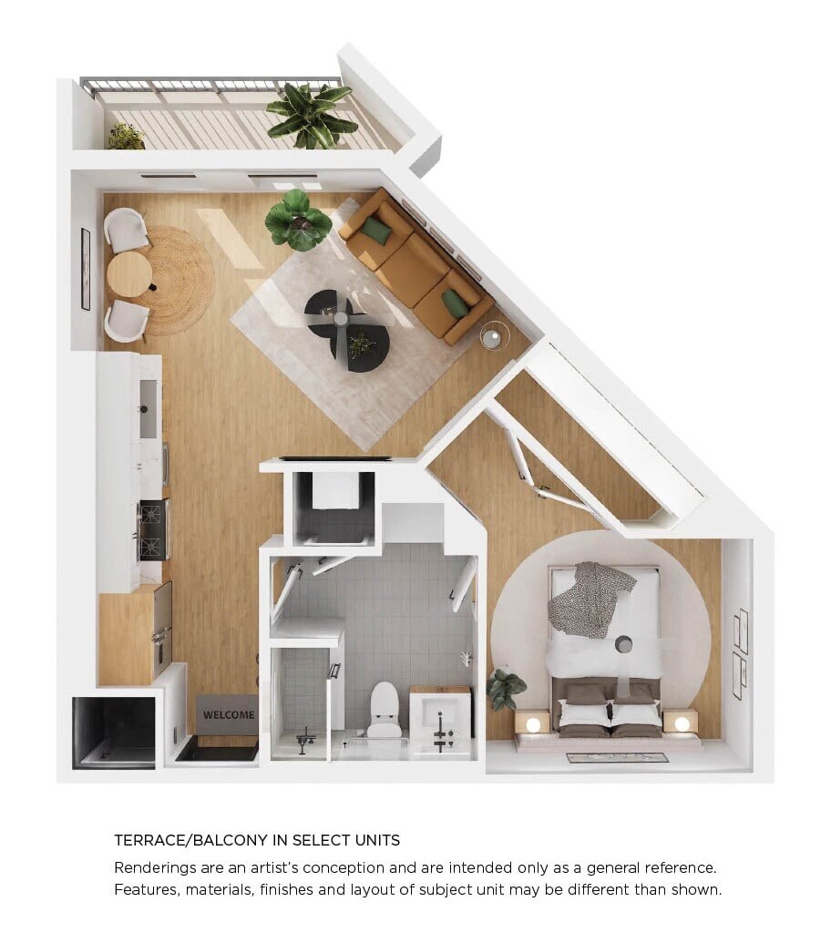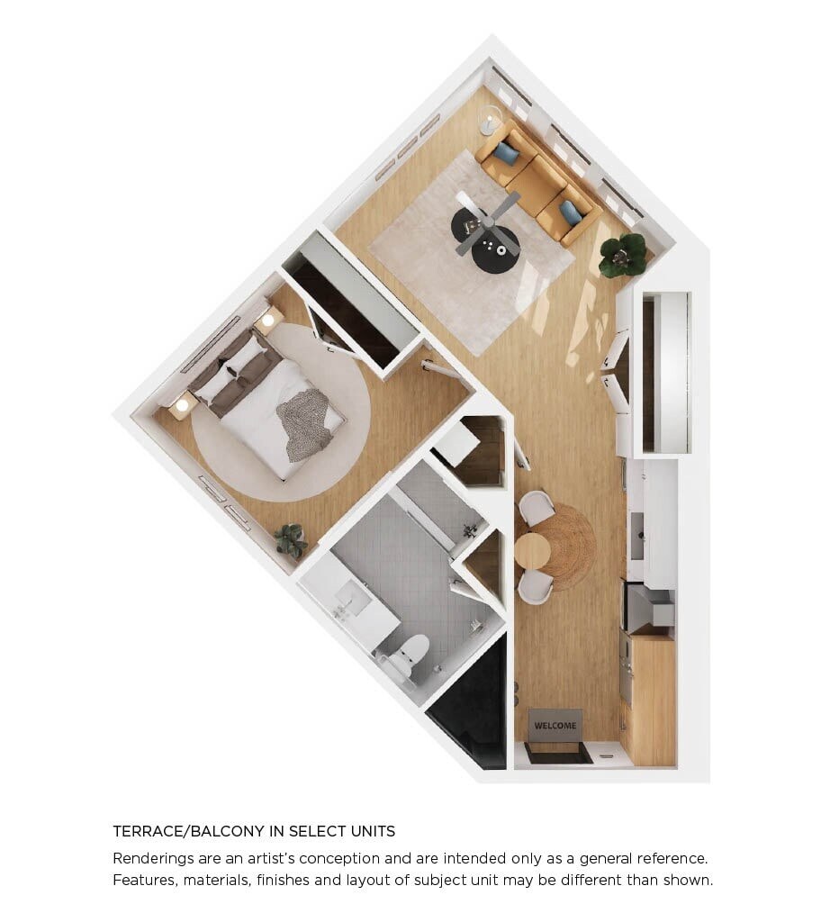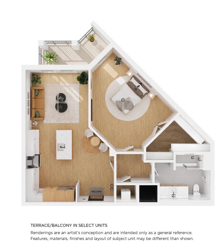 Studio, 1 Bath, 614 sq ftModel Gallery