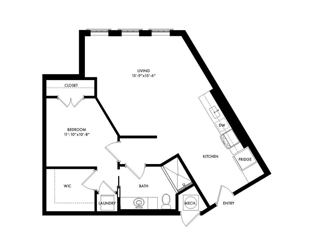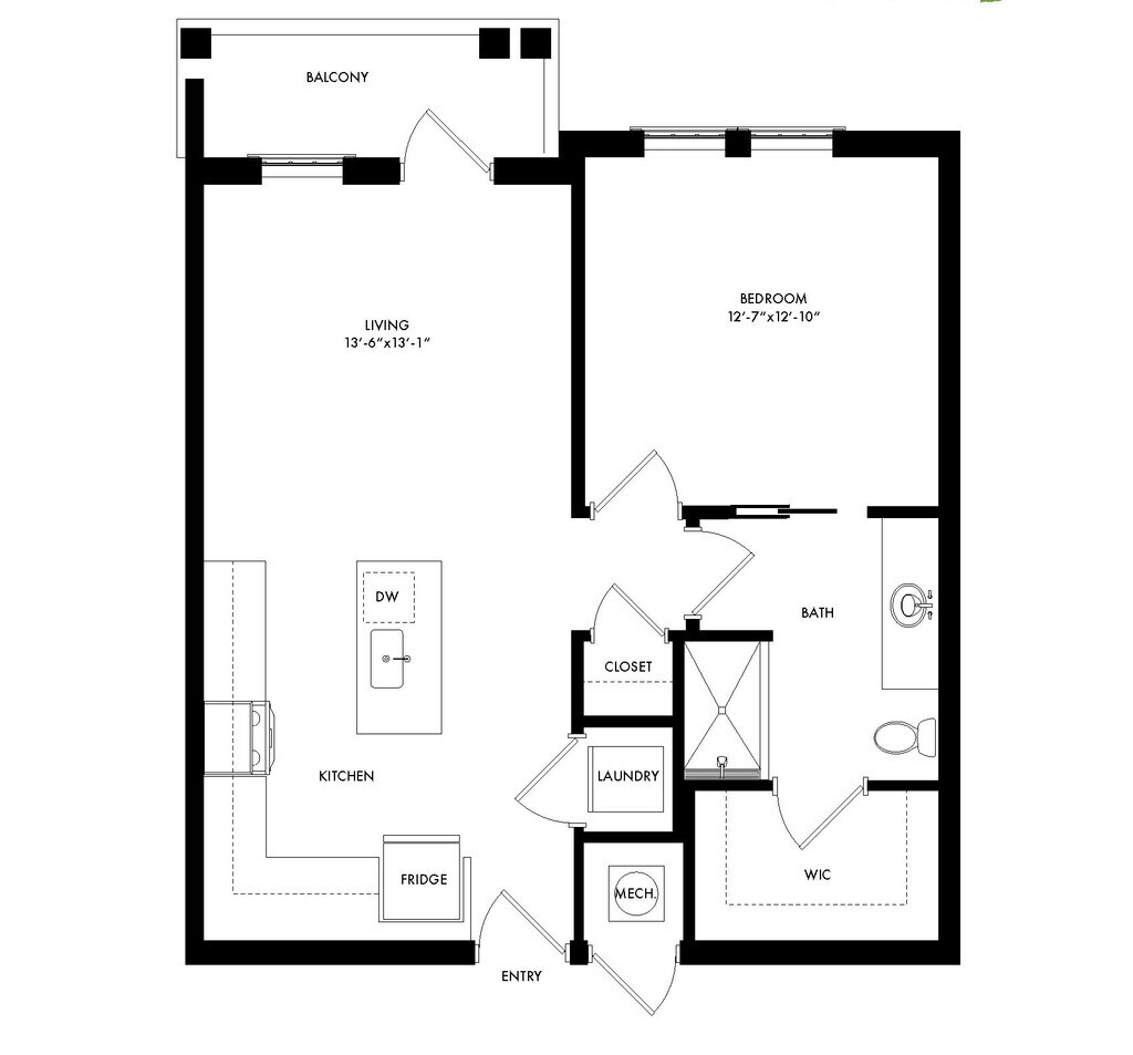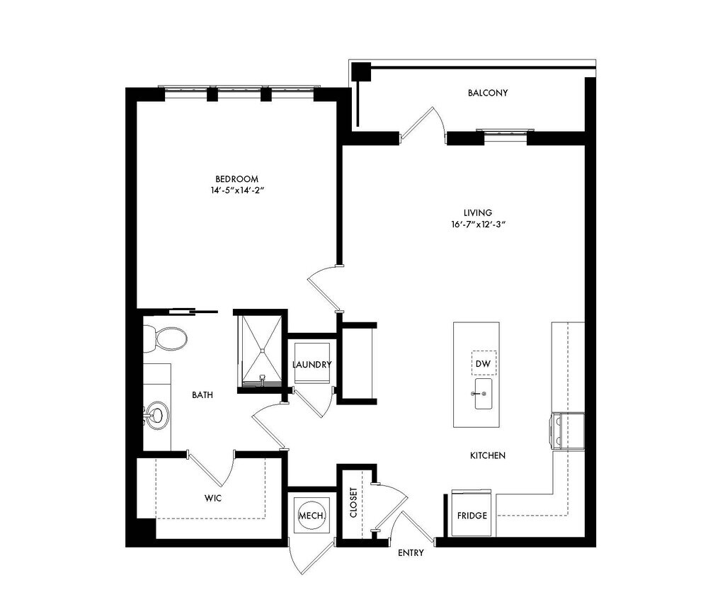 Studio, 1 Bath, 608 sq ftAvailable NowModel Gallery