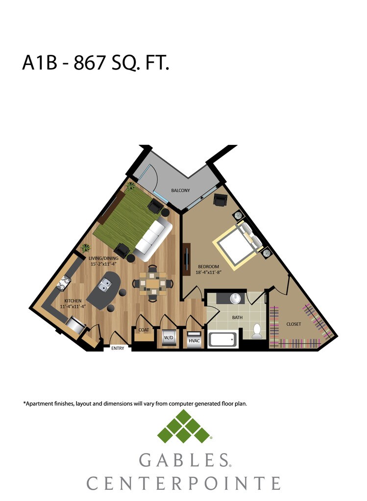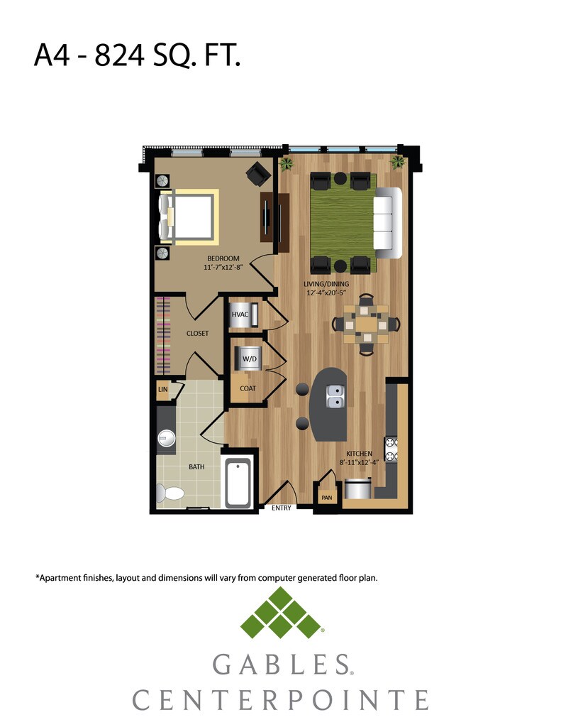 Apartment Model: A1AFrom $1,9521 Bedroom, 1 Bath, 577 sq ftAvailable Now![]()