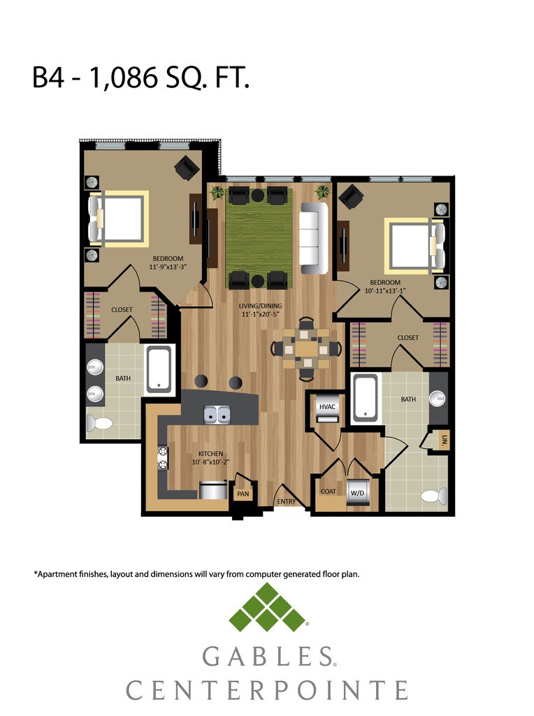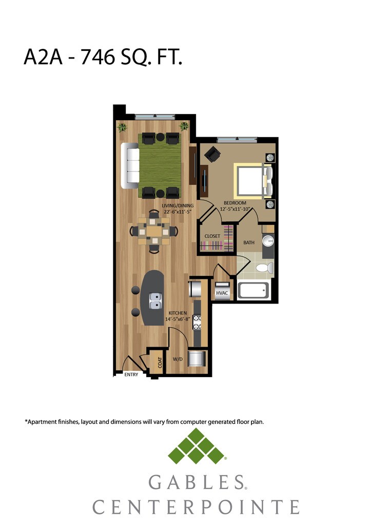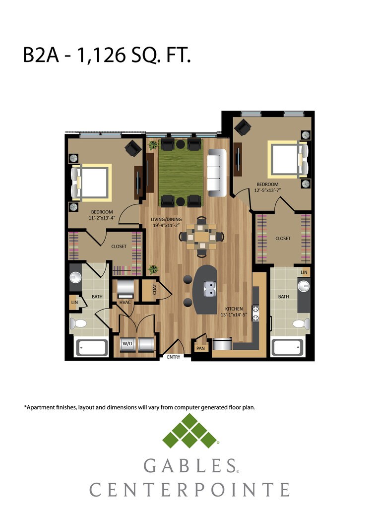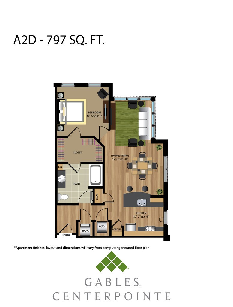 1 Bedroom to 2 Bedroom Apartments at Gables Centerpointe currently range from $1,952 to $2,620