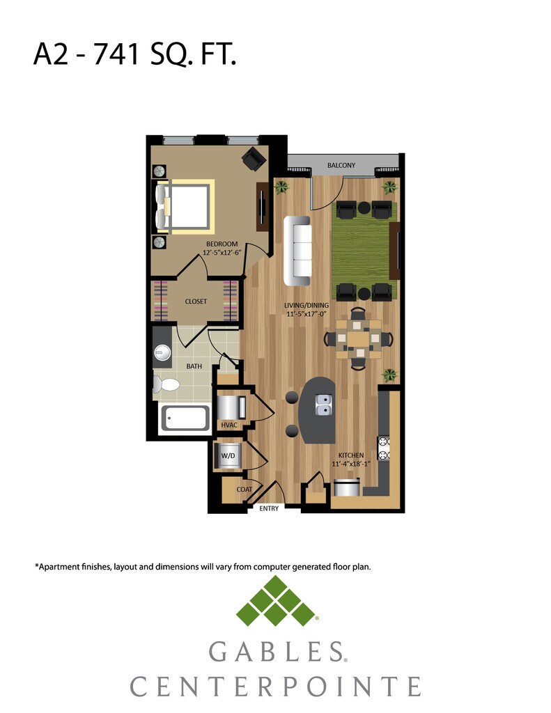 Apartment Model: A2From $1,9821 Bedroom, 1 Bath, 741 sq ftAvailable Now![]()