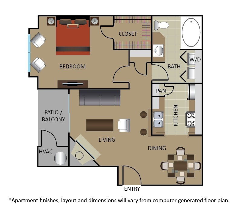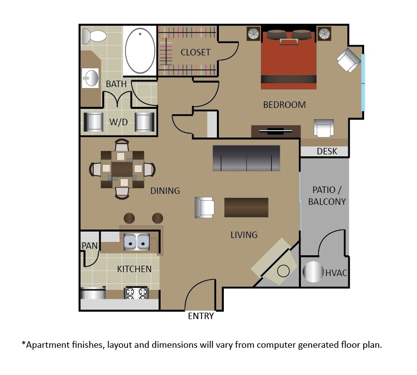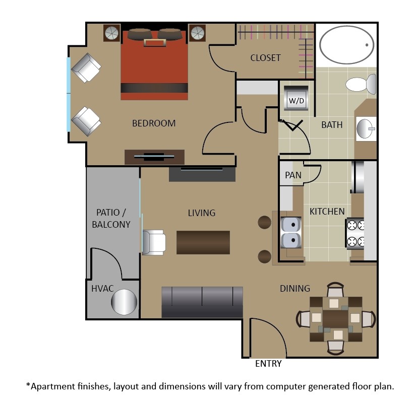 Apartment Model: A1From $1,1491 Bedroom, 1 Bath, 591 sq ftAvailable Now![]()
