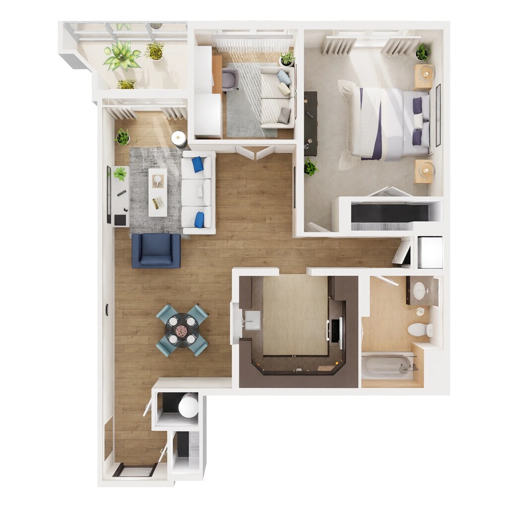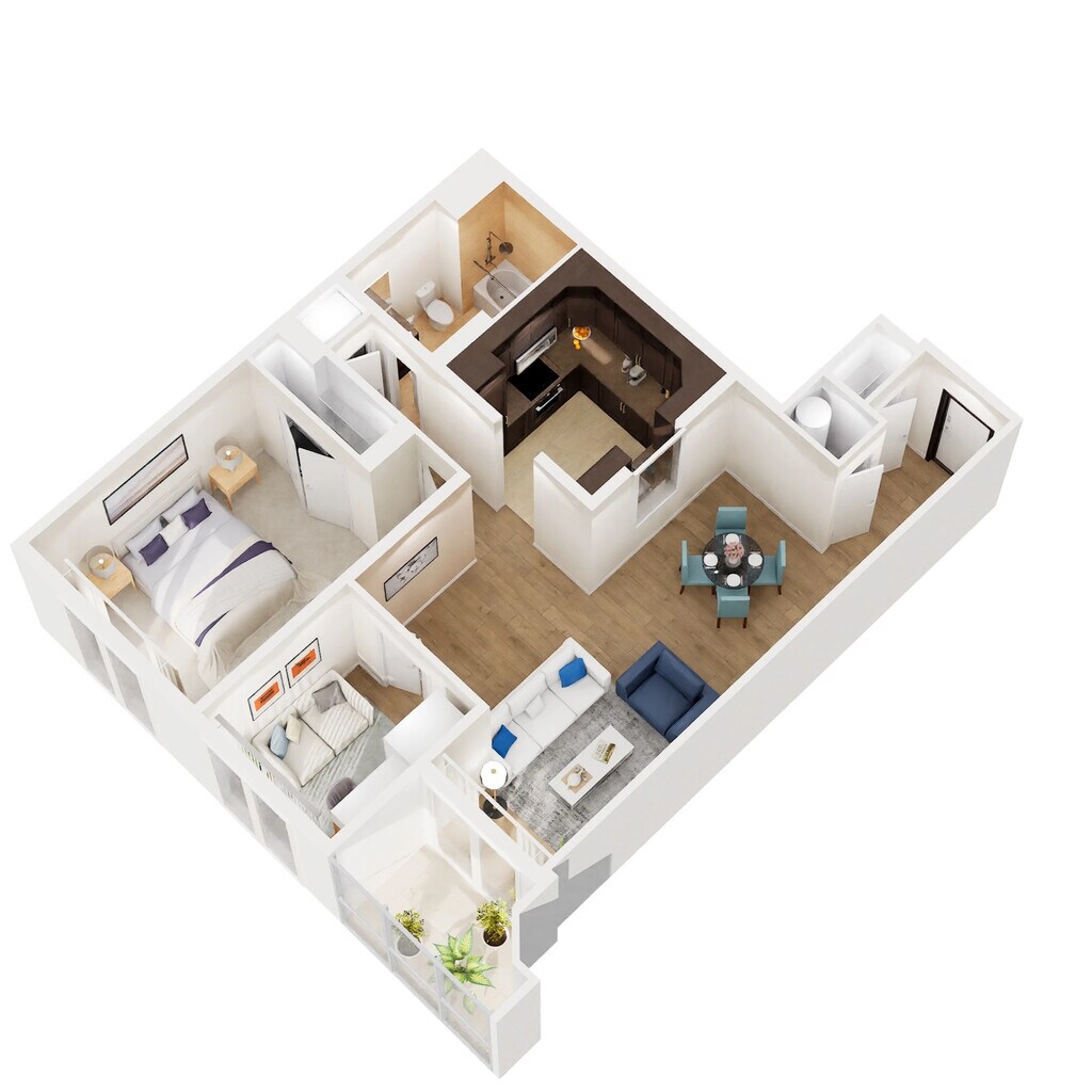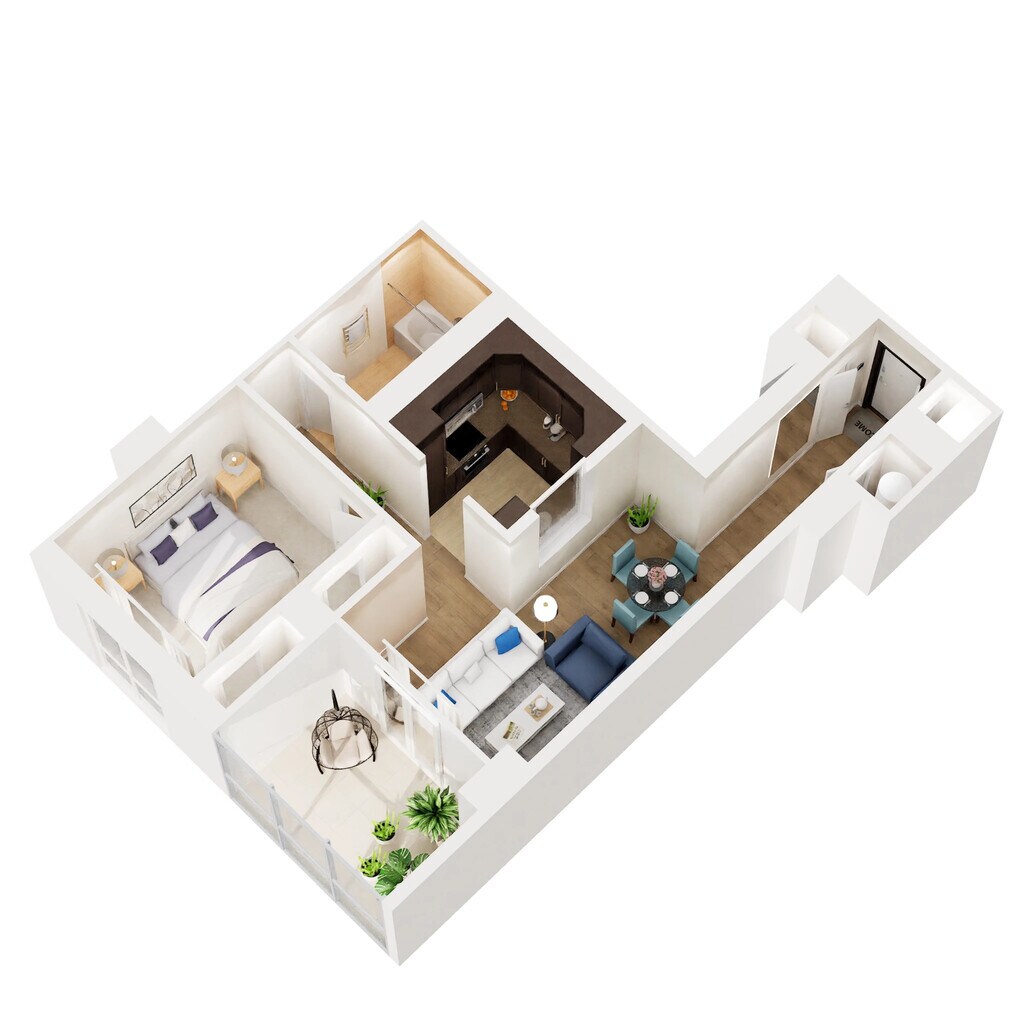 1 Bed, 1 Bath, 653 sq ftModel Gallery