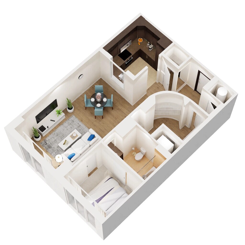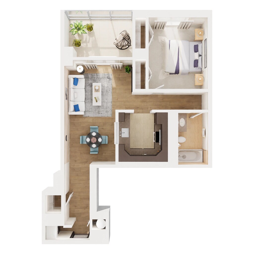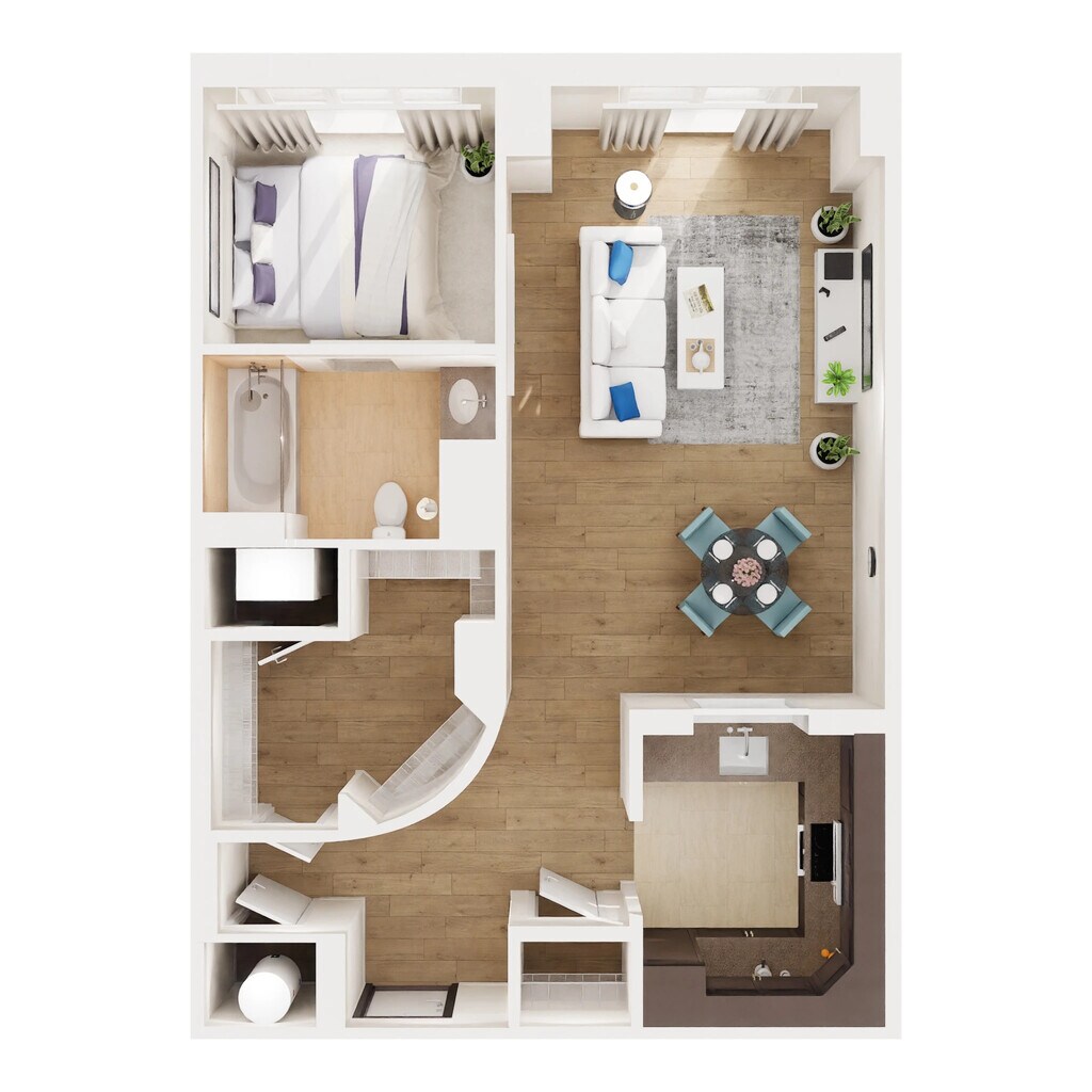 1 Bed, 1 Bath, 653 sq ftModel Gallery