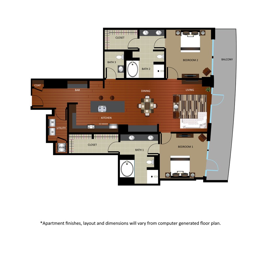 Apartment Model: A3From $2,3441 Bedroom, 1 Bath, 949 sq ftAvailable Now![]()