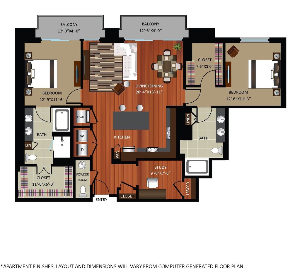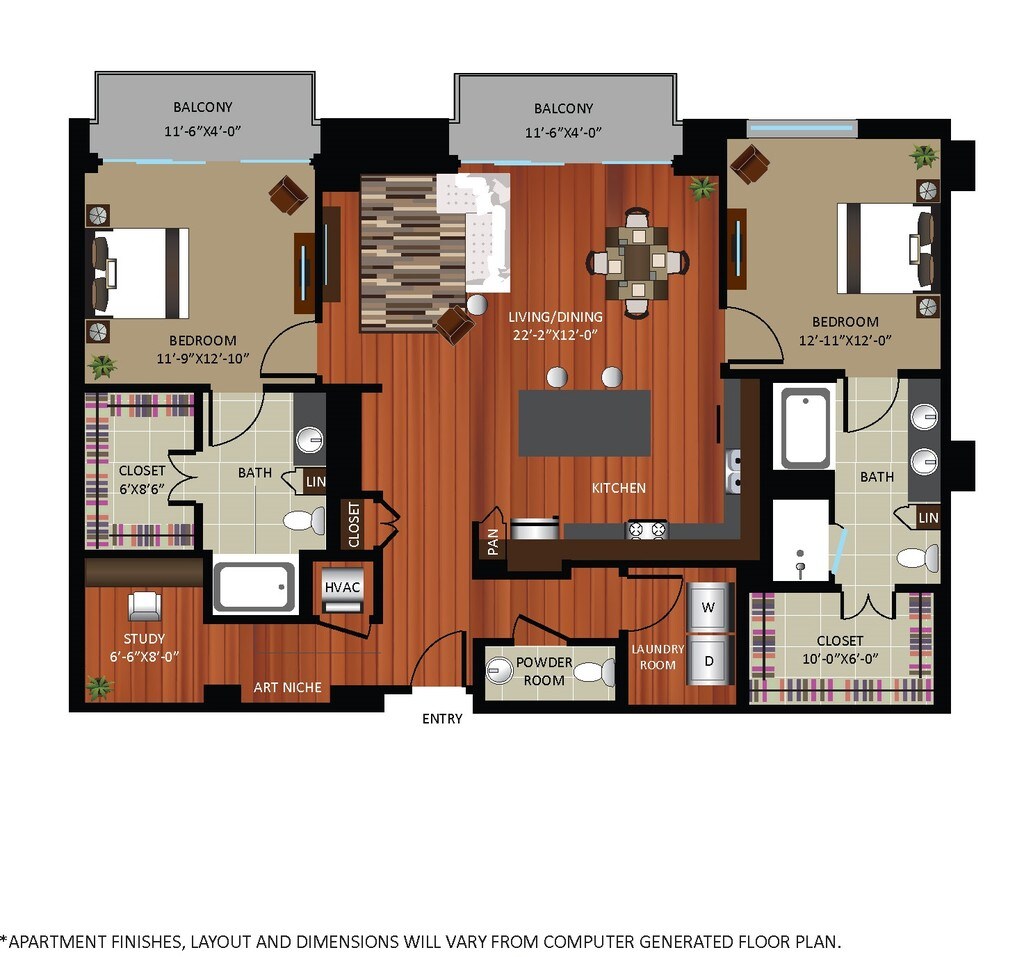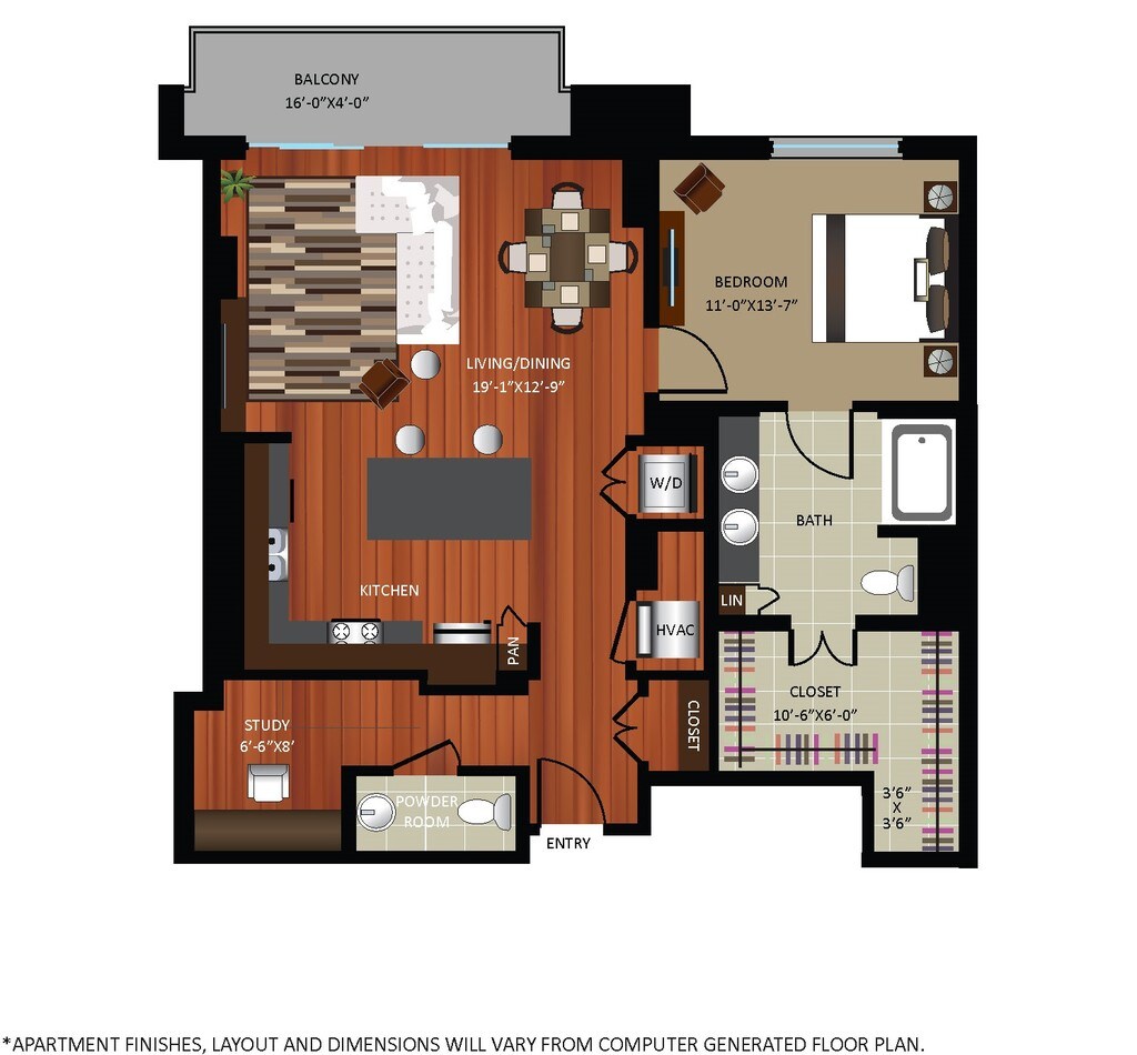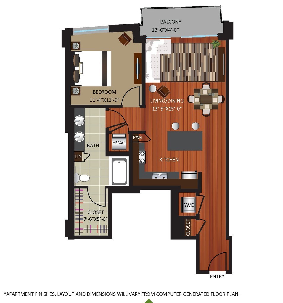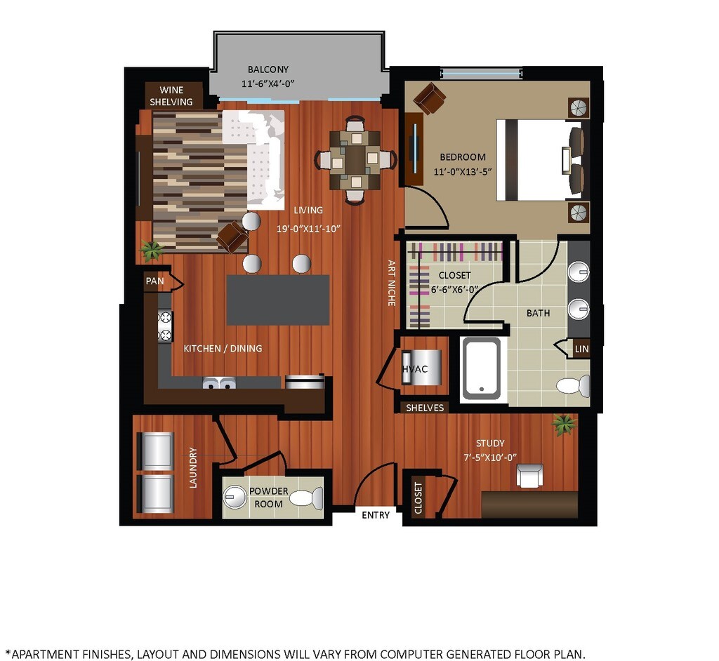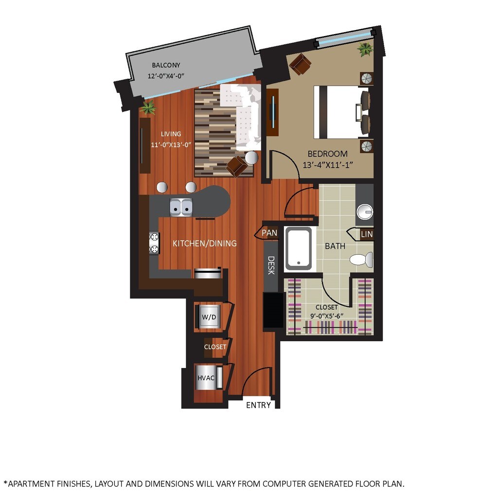 A10 - Floorplan 1 Apartment Unit: 15GApartment Model: A10$3,9171 Bedroom, 1.5 Bath, 1079 sq ftAvailable NowFloorplan A4
