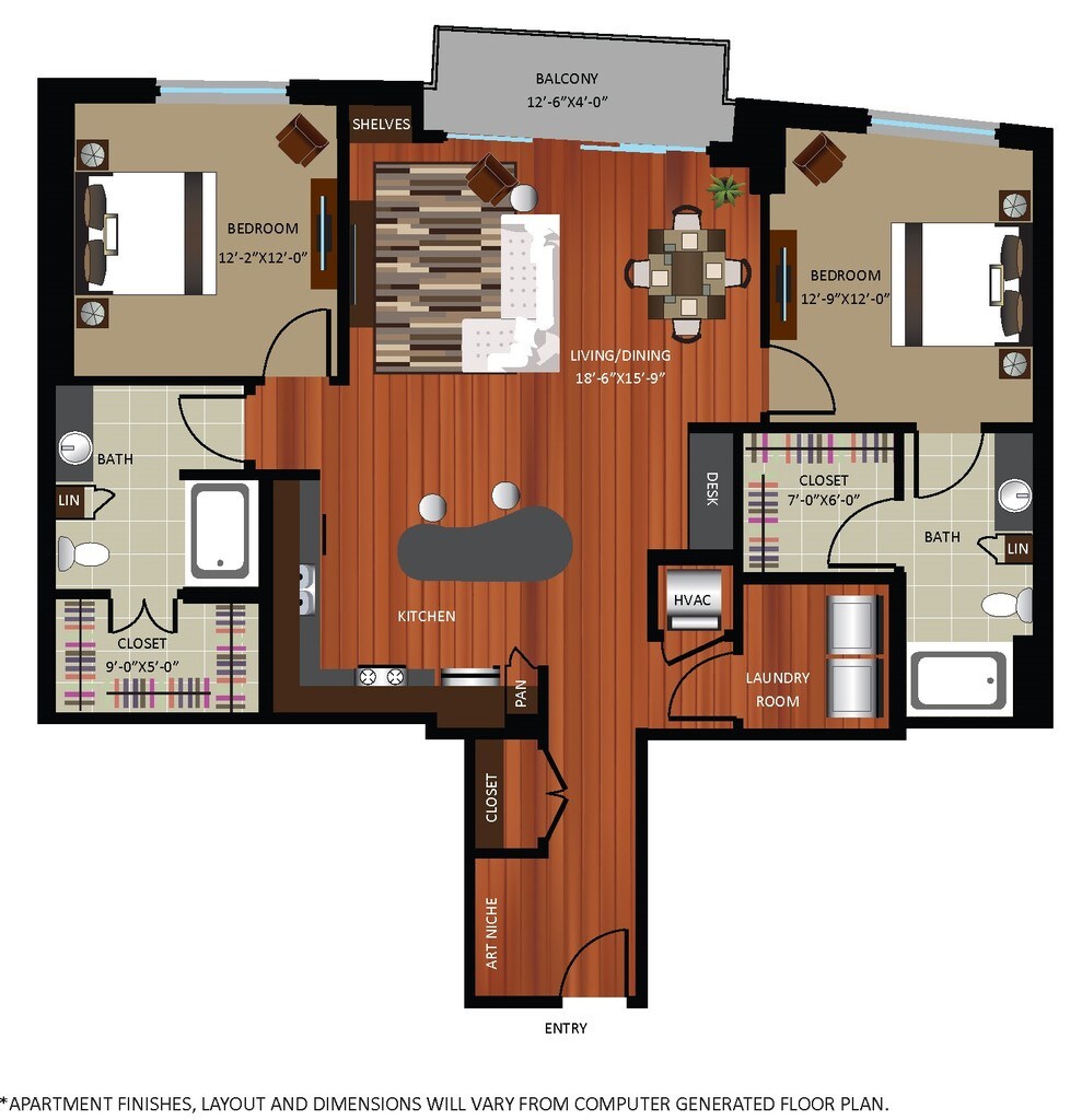 1 Bed, 1.5 Baths, 1079 sq ftAvailable NowModel Gallery