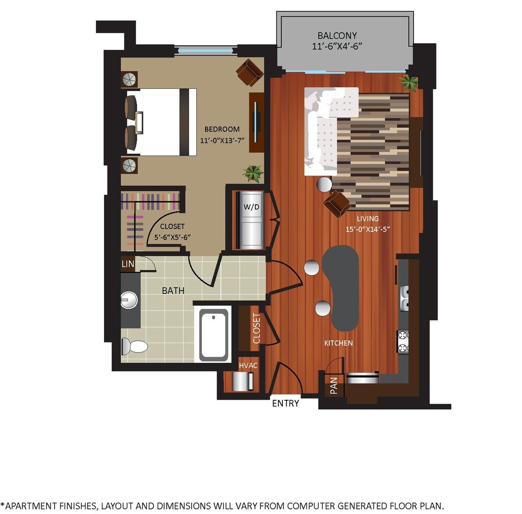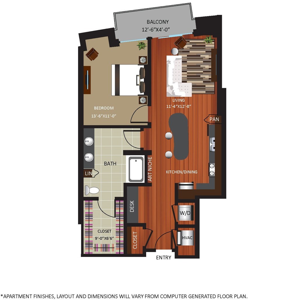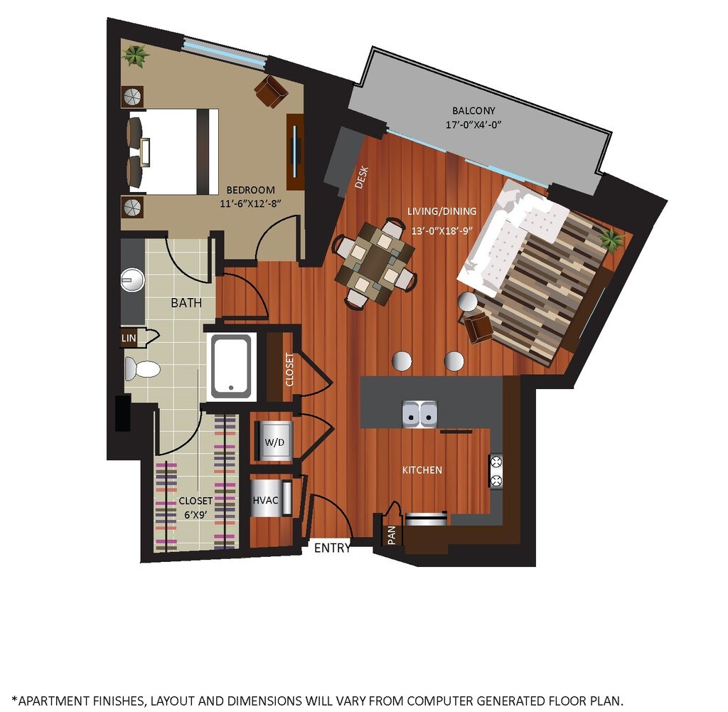 A6 - Floorplan 1 Apartment Unit: 18KApartment Model: A6$3,6171 Bedroom, 1 Bath, 879 sq ftAvailable NowFloorplan A10