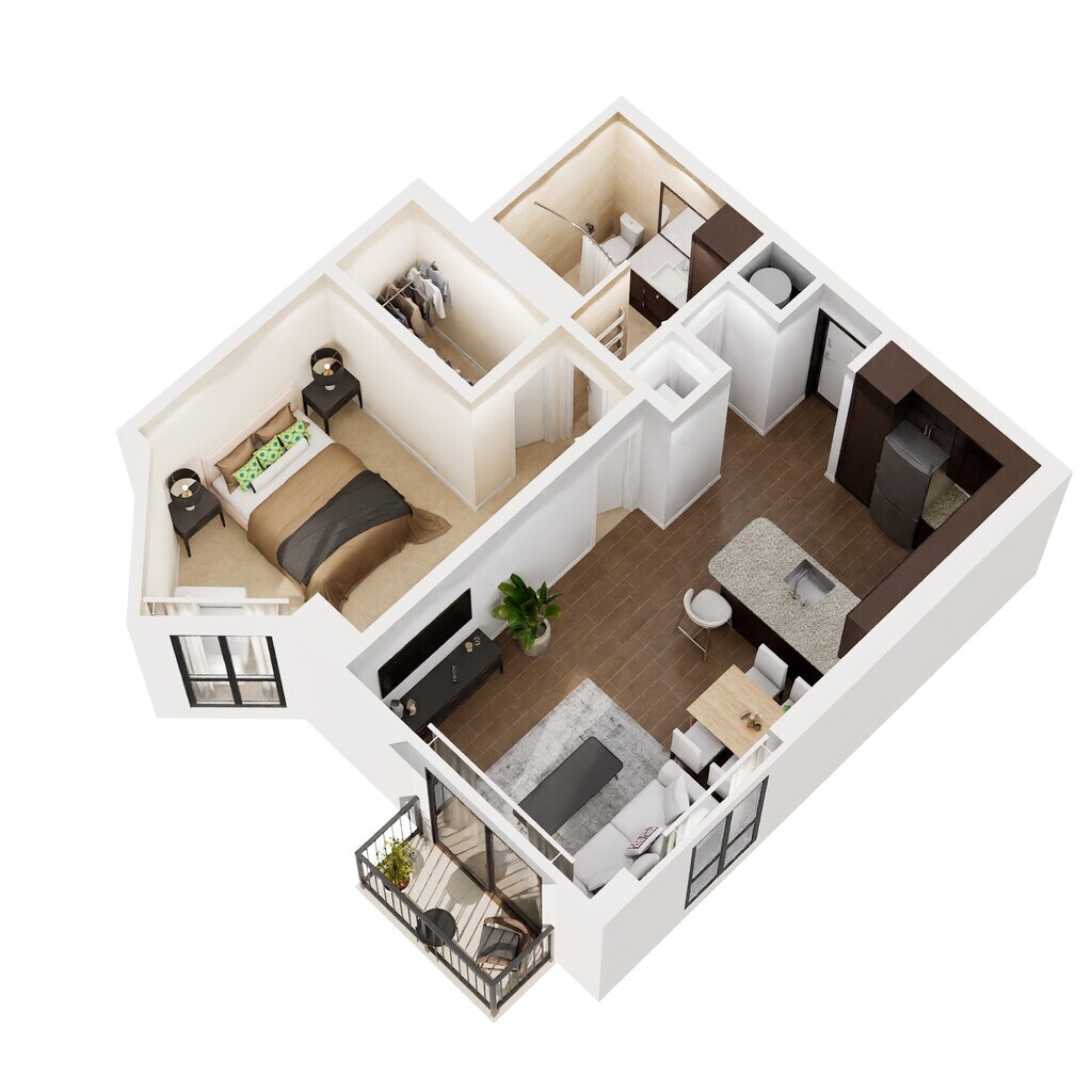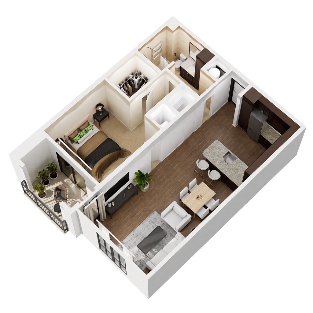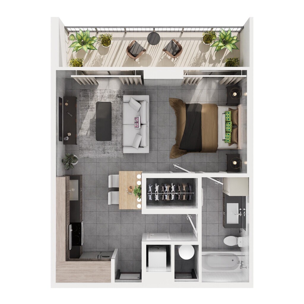 Studio, 1 Bath, 619 sq ftModel Gallery