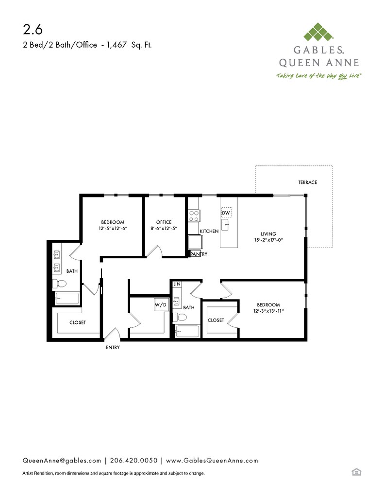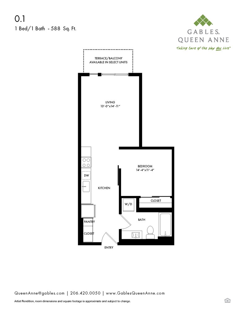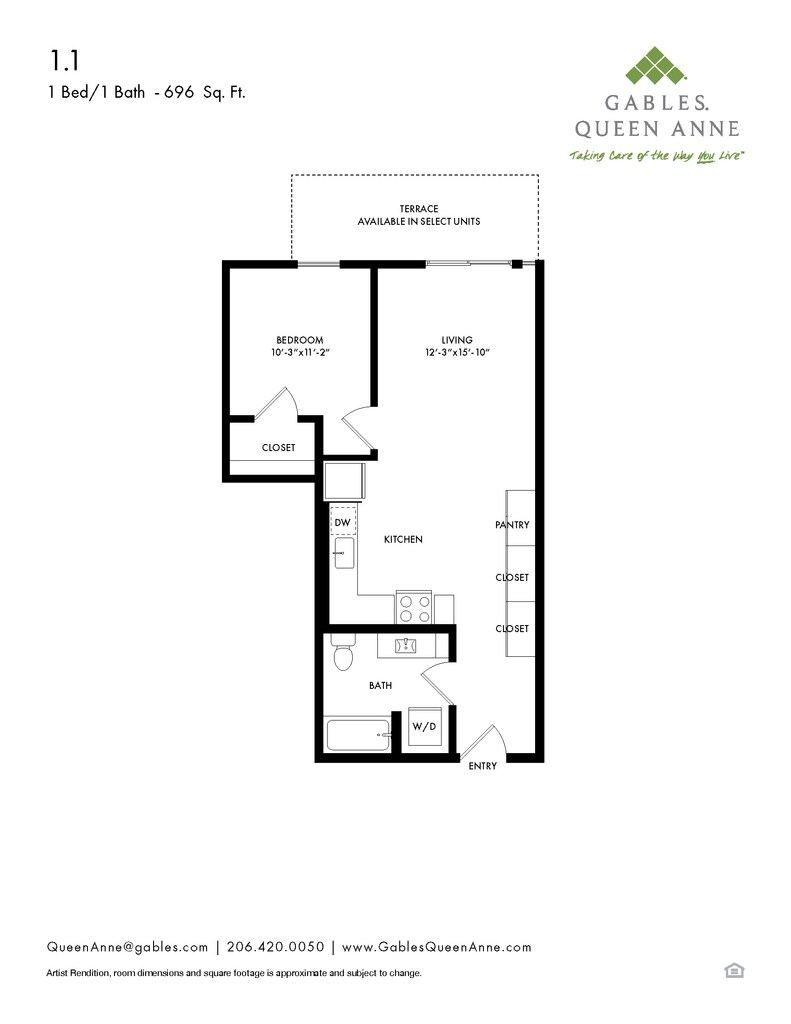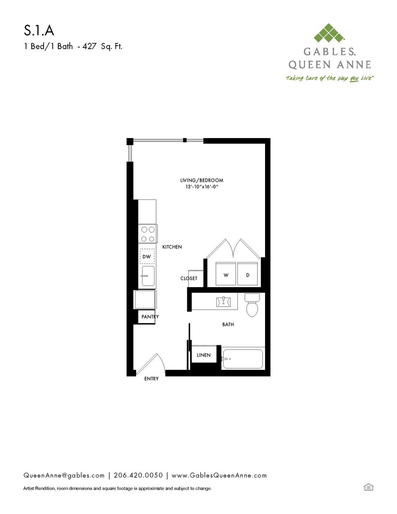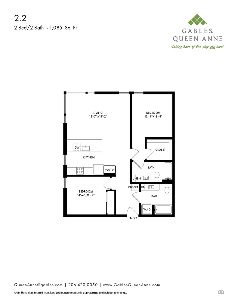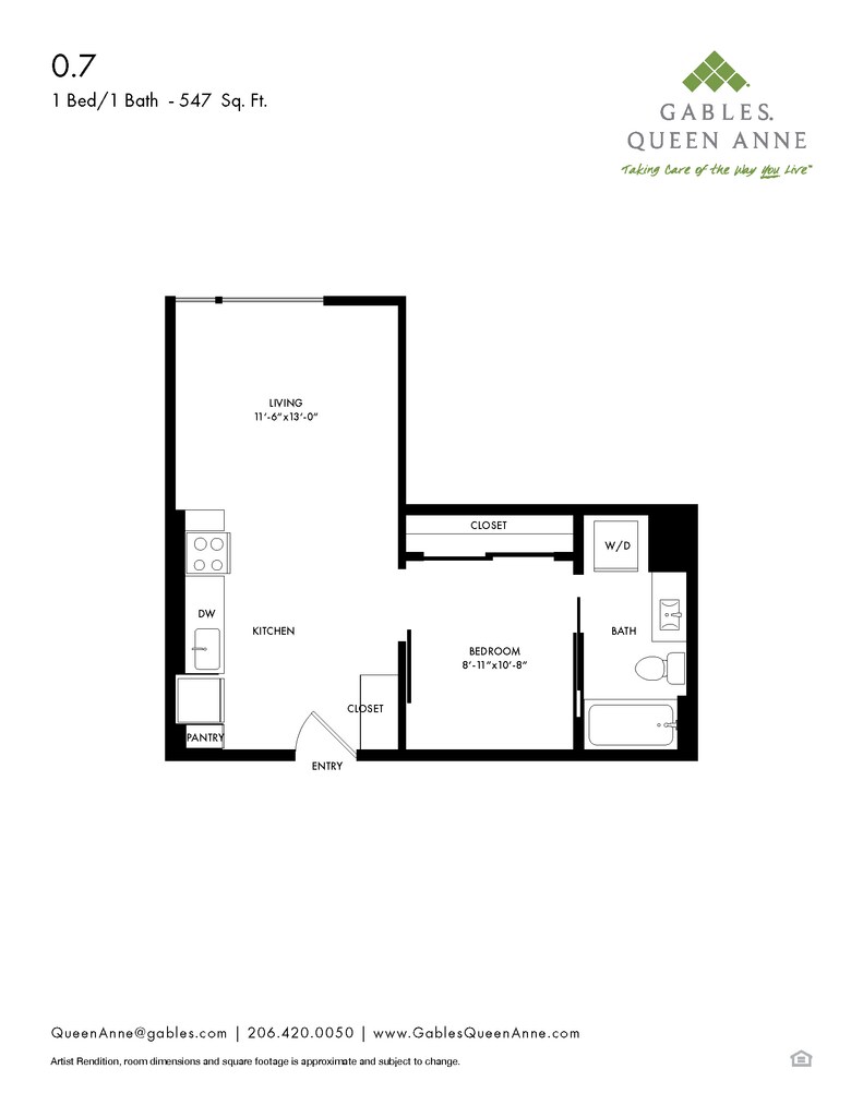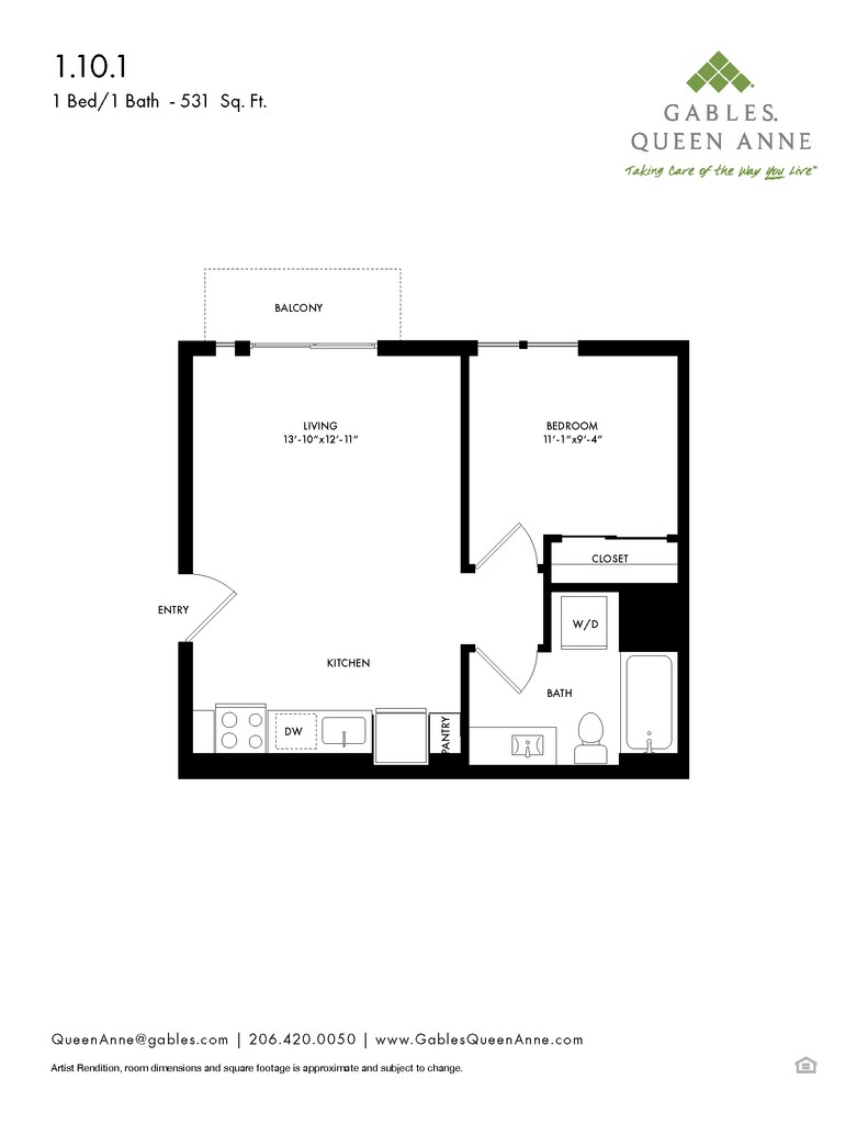 Gables Queen Anne offers Studio to 2 Bedroom apartments starting from $1,810 and having 301–1,467 sq ft. Here is the current pricing and availability: